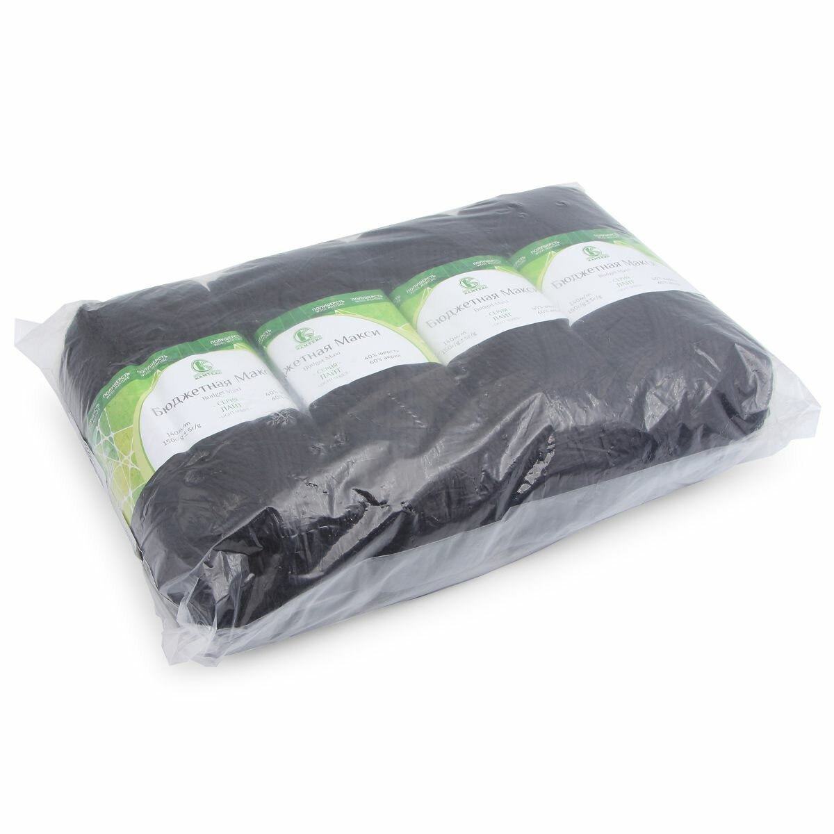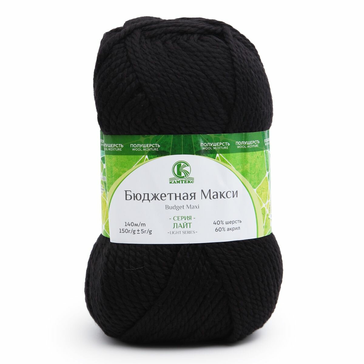 Пряжа Бюджетная макси, Камтекс, черный - 003, 40% шерсть, 60% акрил, 4 мотка, 150 г, 140 м. информация: