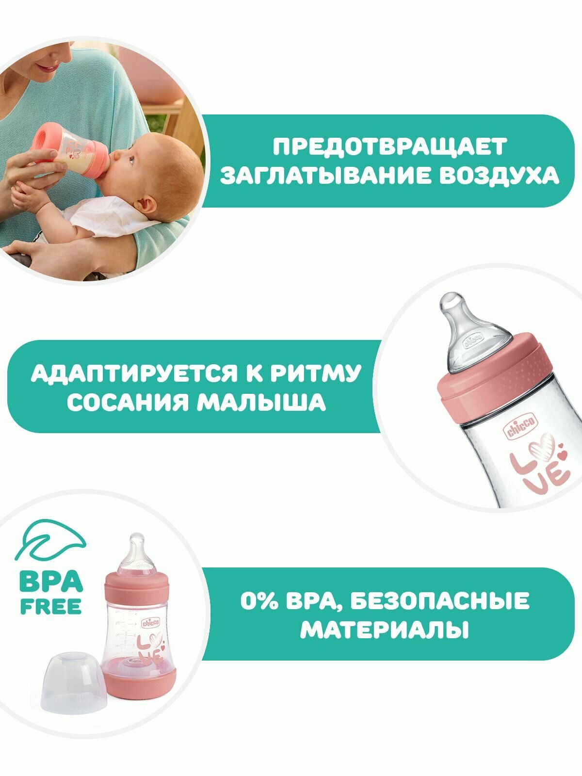 Бутылочка для кормления для новорожденных CHICCO Perfect5 Girl 0мес.+,силиконовая соска медленный поток,РР,150мл. NEW
