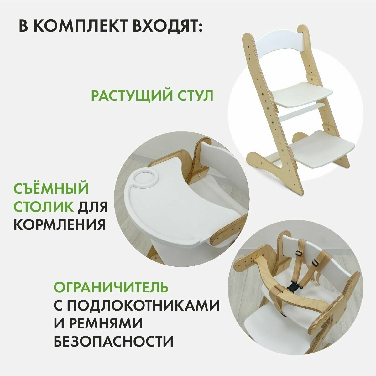 | Комплектация | 11 деталей стульчика / 6 деталей столика для кормления / ремень безопасности / комплект подушек / цветная подробная инструкция + ссылка на видео / 32 единицы мебельной фурнитуры / 2 ключа для сборки / рекомендации по настройке стульчика. |