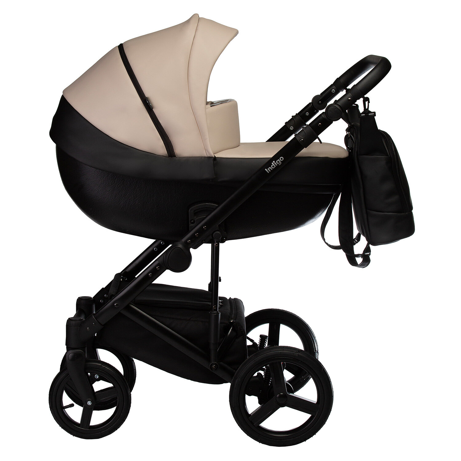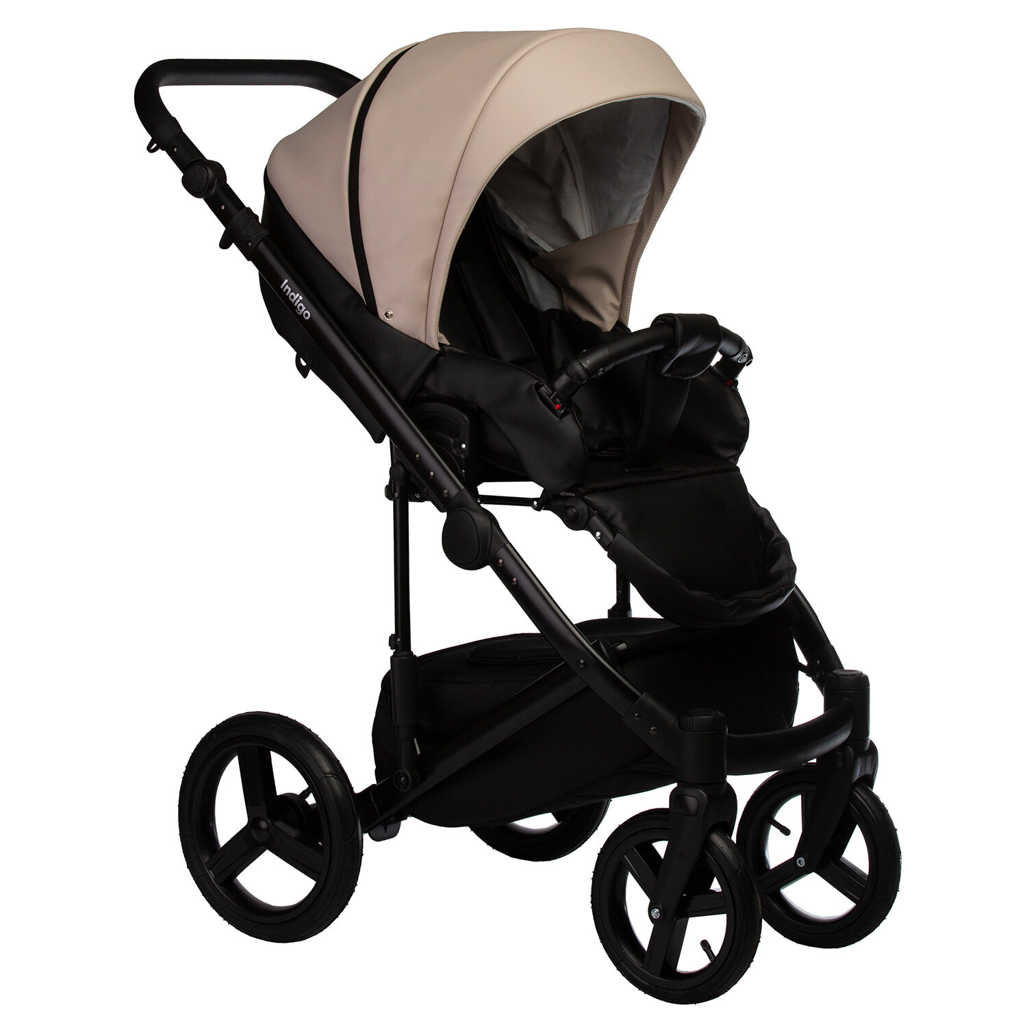 Коляска Indigo Baby TOUR ECO, 2 в 1, черная/бежевая, резиновые колеса, , люлька информация: