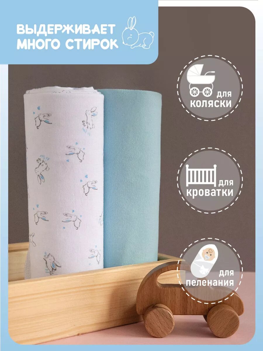 Пеленки для новорожденных трикотажные хлопковые 90х120 см набор - 2шт, " Зайчики" 892 ₽