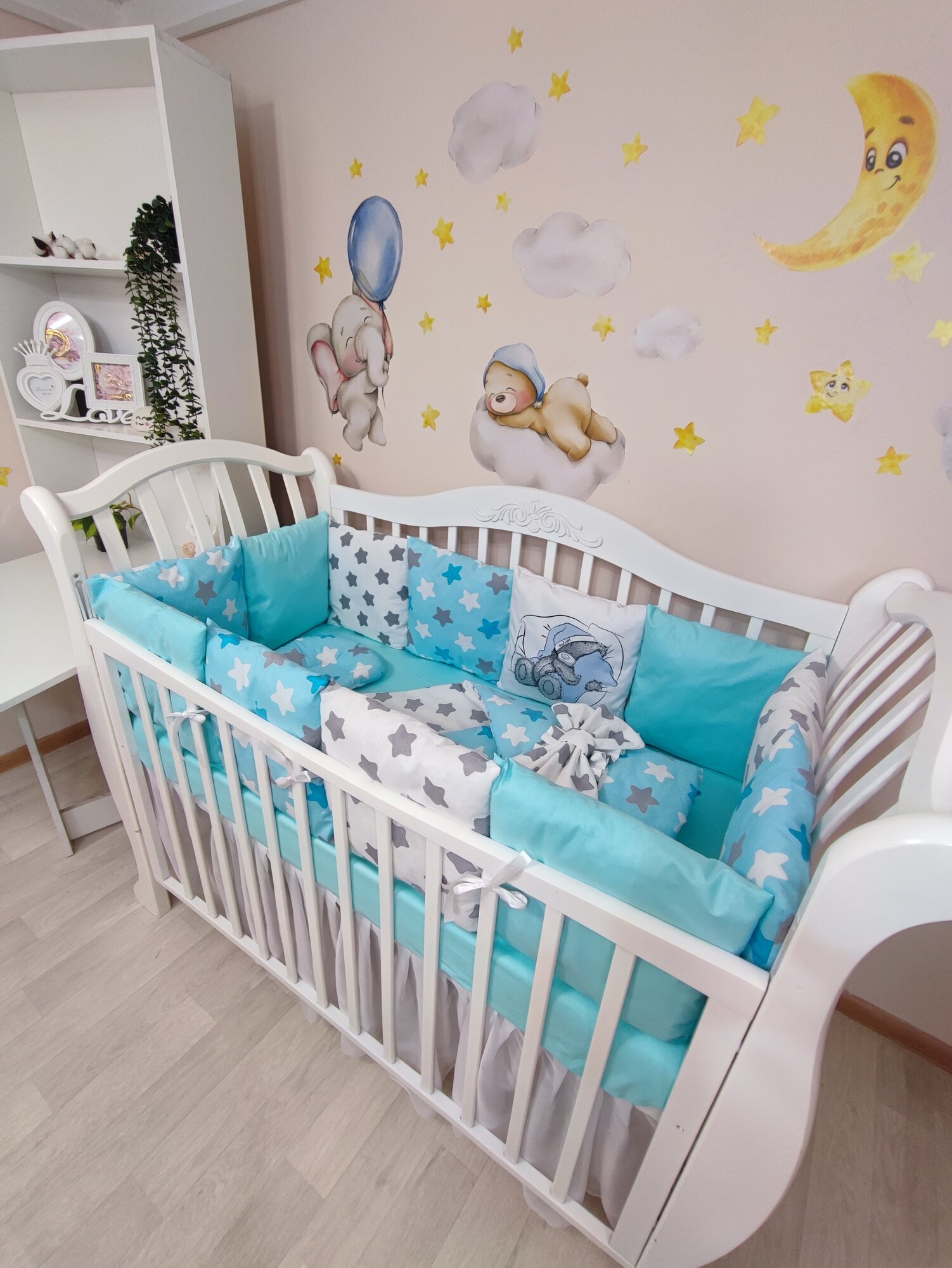 Комплект бортиков в кроватку из 16 предметов Mamdis для новорожденных и малышей со звездами 5 300 ₽