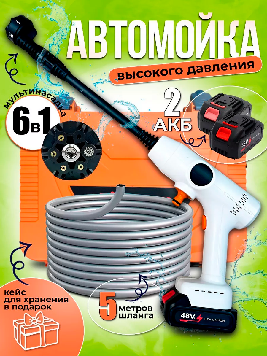 10 цен на Аккумуляторная автомойка , высокого давления, для автомобиля в кейсе 2 аккумулятора/ минимойка с пистолетом и пенообразователем в кейсе для дачи