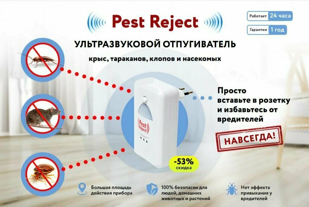 Отзывы на Отпугиватель Pest Reject, ультразвуковой, до 200м², от насекомых и грызунов