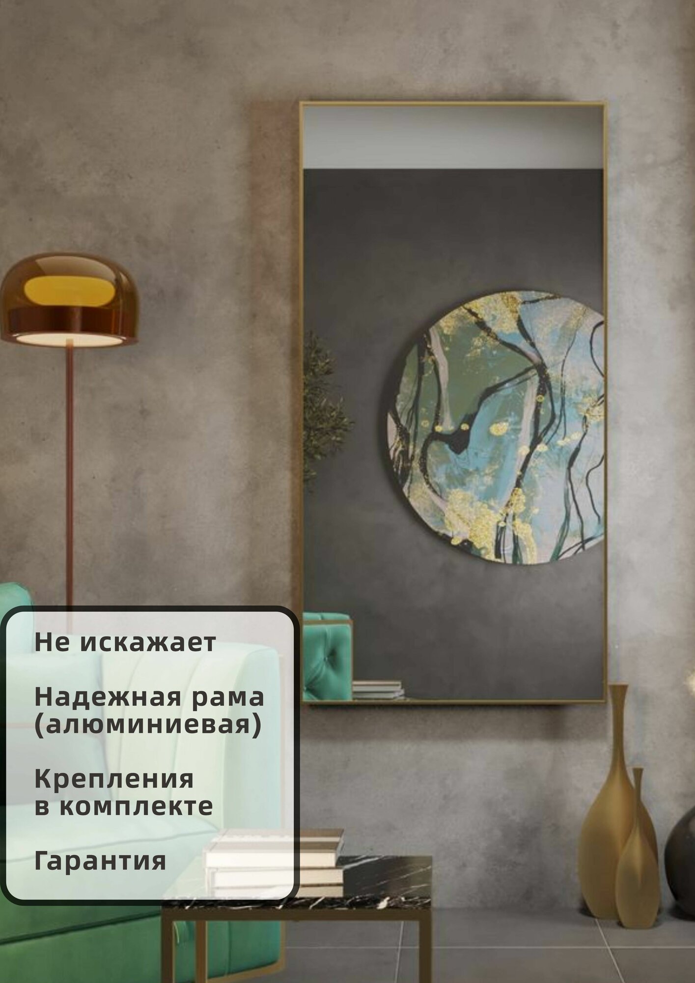 Золотое Зеркало Merida в полный рост 140×70 см в раме, цвет матовое золото 8 950 ₽