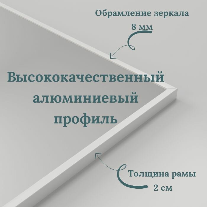 | Комплектация | 1. Зеркальное полотно в алюминиевой раме - 1 шт. (профиль: передняя ширина 8 мм, задняя ширина 45 мм, толщина профиля 20 мм) 2. Крепление подвесной системы - 2 шт. |
