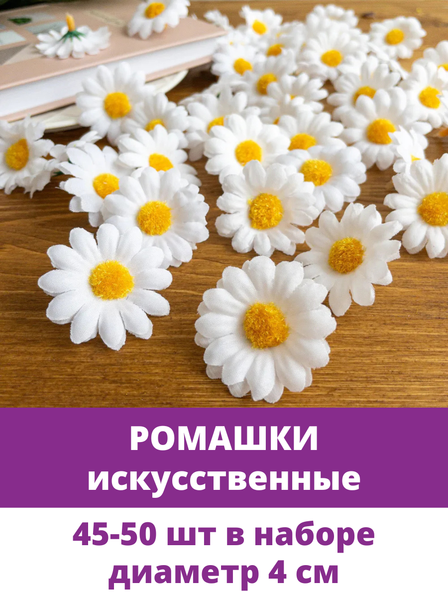 Ромашки искусственные, луговые, белые, цветочек - 4 см, в наборе 45-50 шт информация: