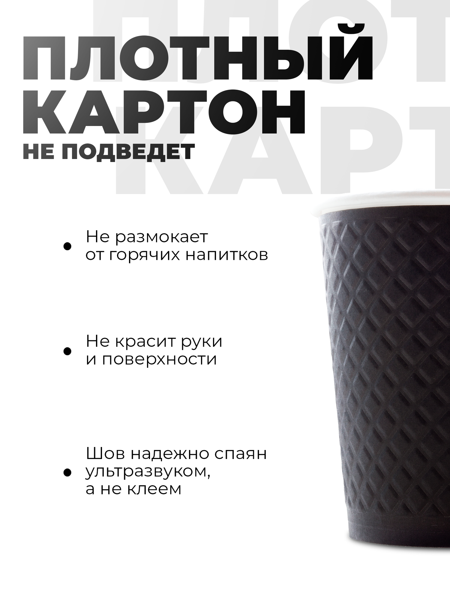 Бумажные одноразовые стаканы Formacia Waffle, черные, двухслойные, 300мл, 25 штук информация: