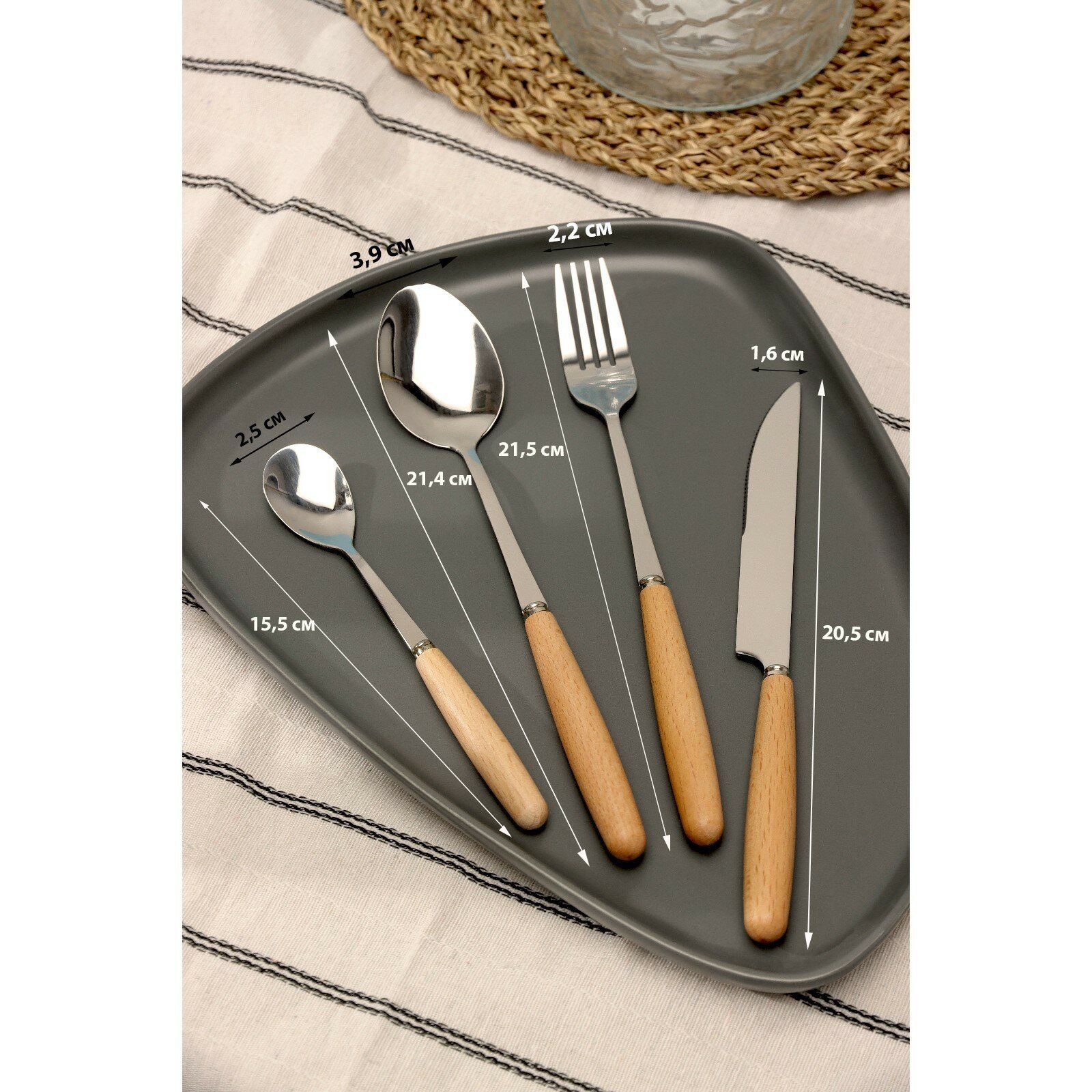 Отзывы на Набор столовых приборов из нержавеющей стали Доляна Wood, 4 предмета, цвет металла серебряный, 7354197