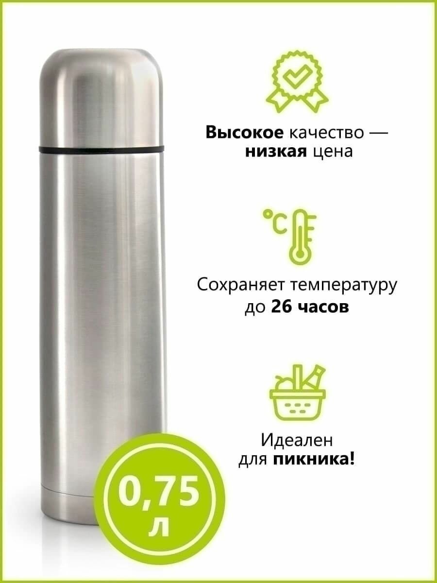 Термос Тайган универсальный 0.75 литра из нержавеющей стали для кофе воды и чая, туристическая походная посуда для дачи, рыбалки, природы и путешествий информация: