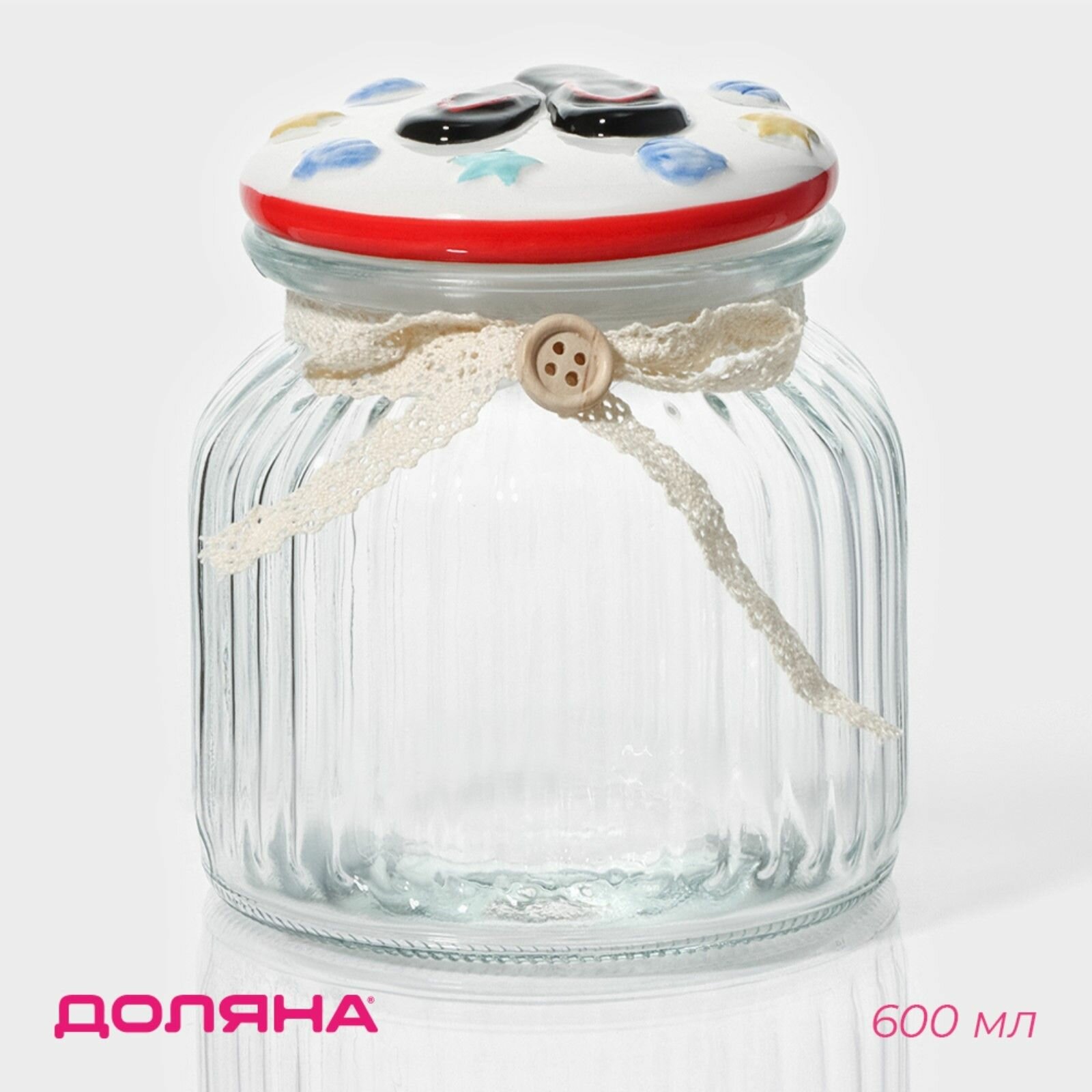 Банка стеклянная для хранения сыпучих продуктов Доляна Пляж , 600 мл, 11 12,5 см, с керамической крышкой информация: