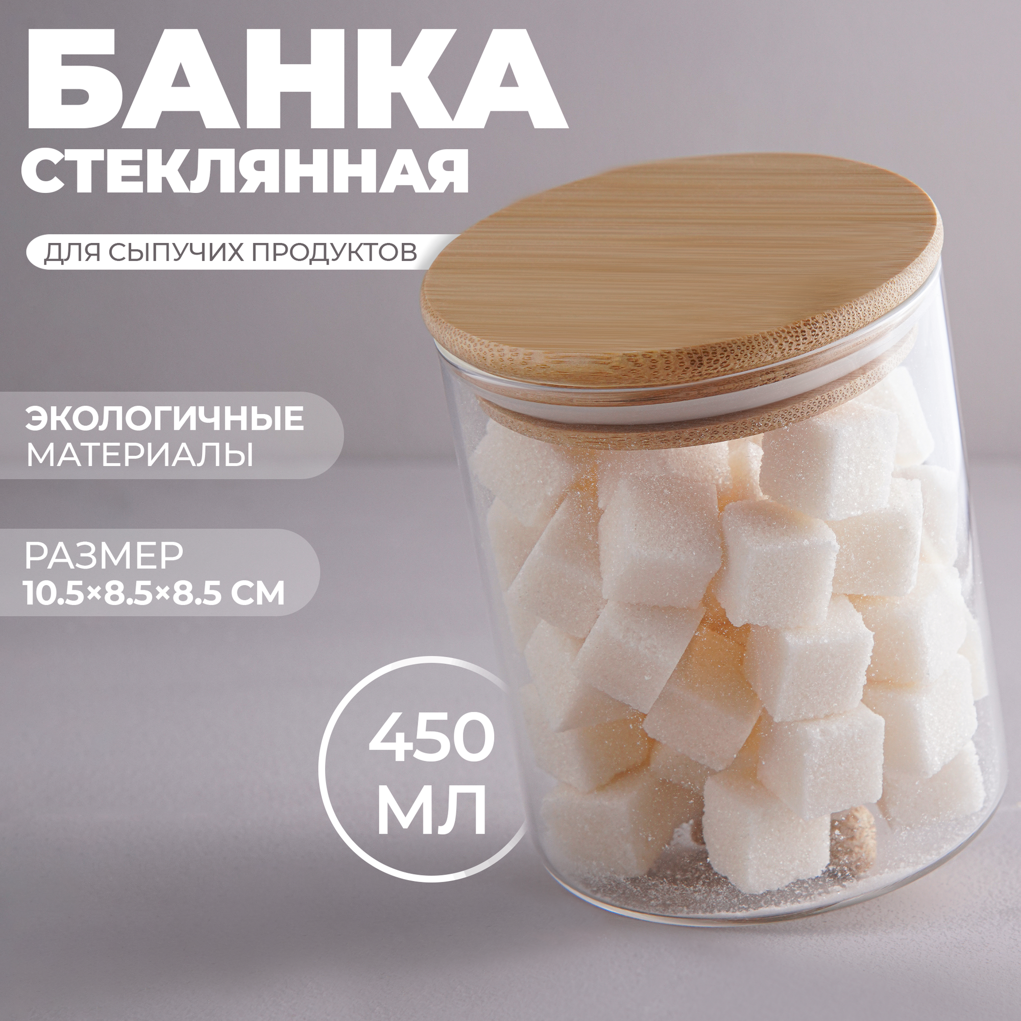 Банка для хранения сыпучих продуктов "Эко. Квадратная" с крышкой, объем 700 мл, размер 10х10,5 см