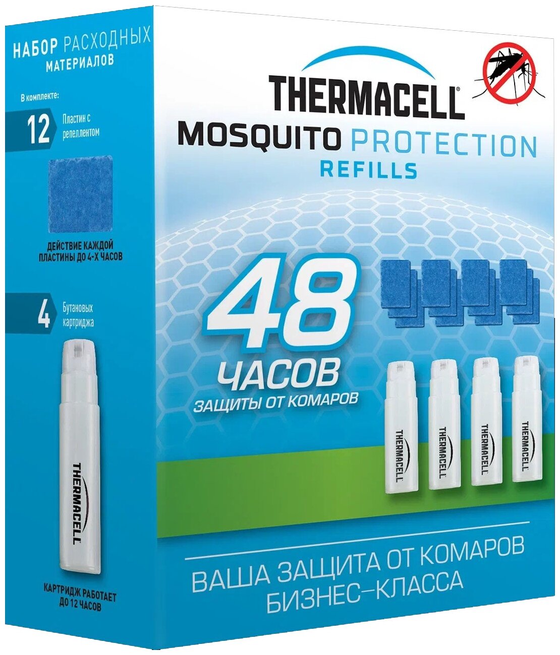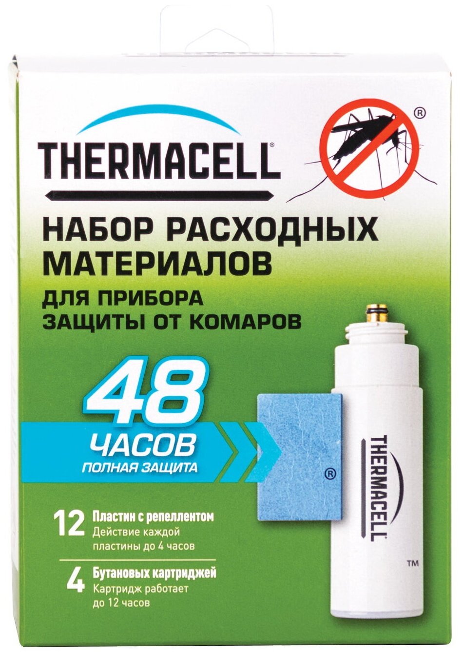 Набор расходных материалов приборов Thermacell (4 газовых картриджа + 12 пластин, защита на 48 часов) информация: