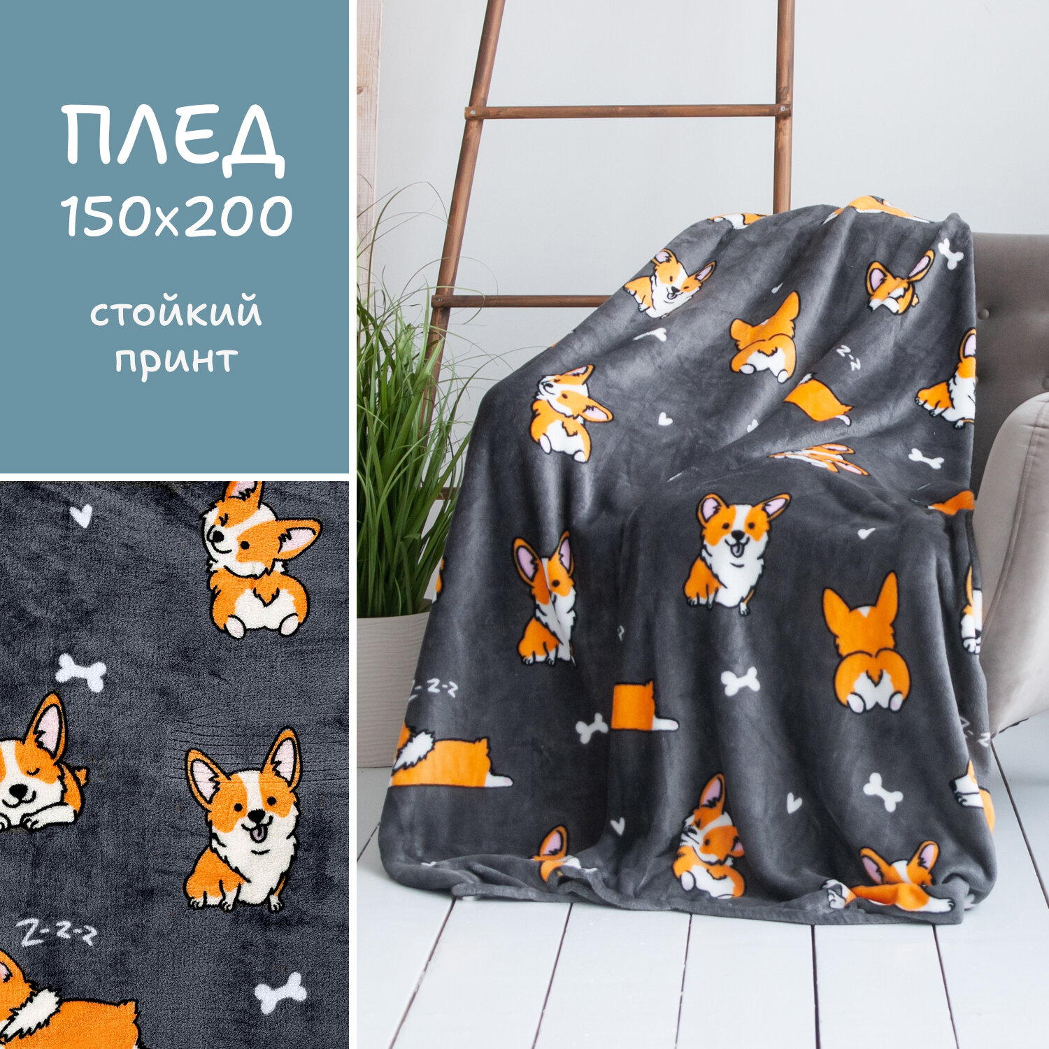 Плед микрофибра Festival 180x200 корги серый, 2077622 1 897 ₽
