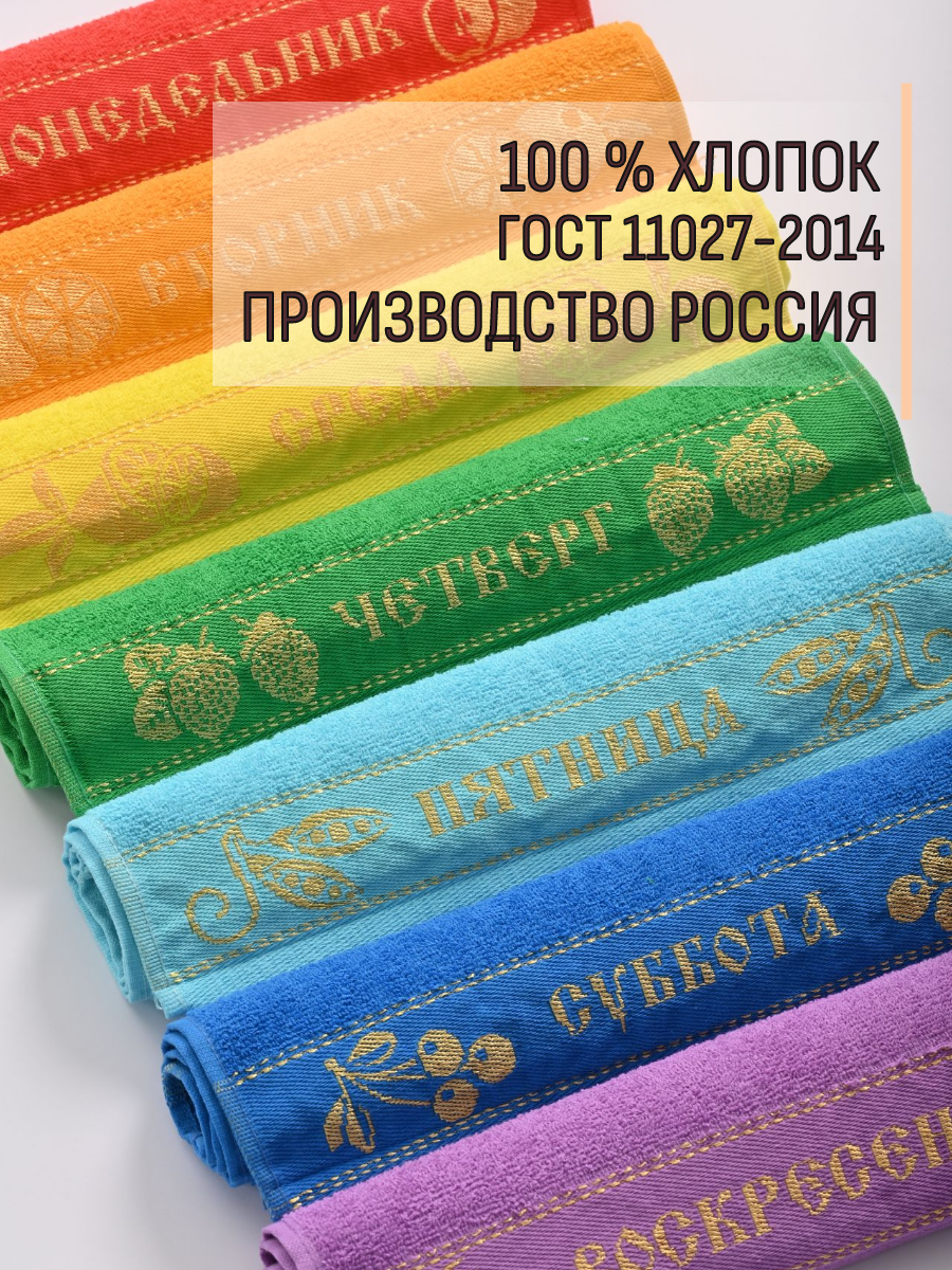 10 цен на Кухонные полотенца набор, махровые Неделька 7 шт. с днями недели, 100% хлопок, 35х60 см