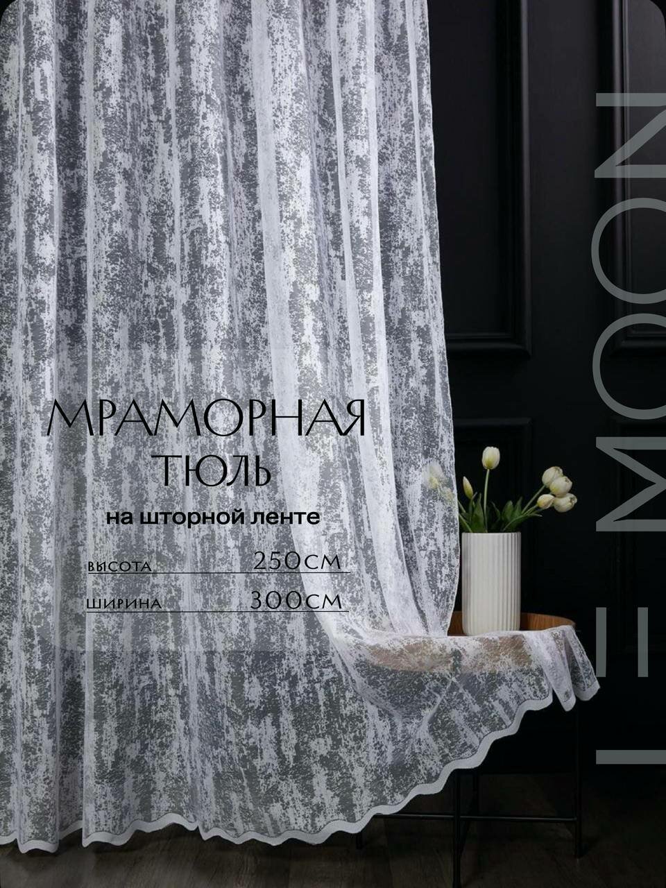 10 цен на Тюль сетка мрамор белый LEmoon, 300*250 Для гостиной, спальни, кухни, дачи, детской, балкон