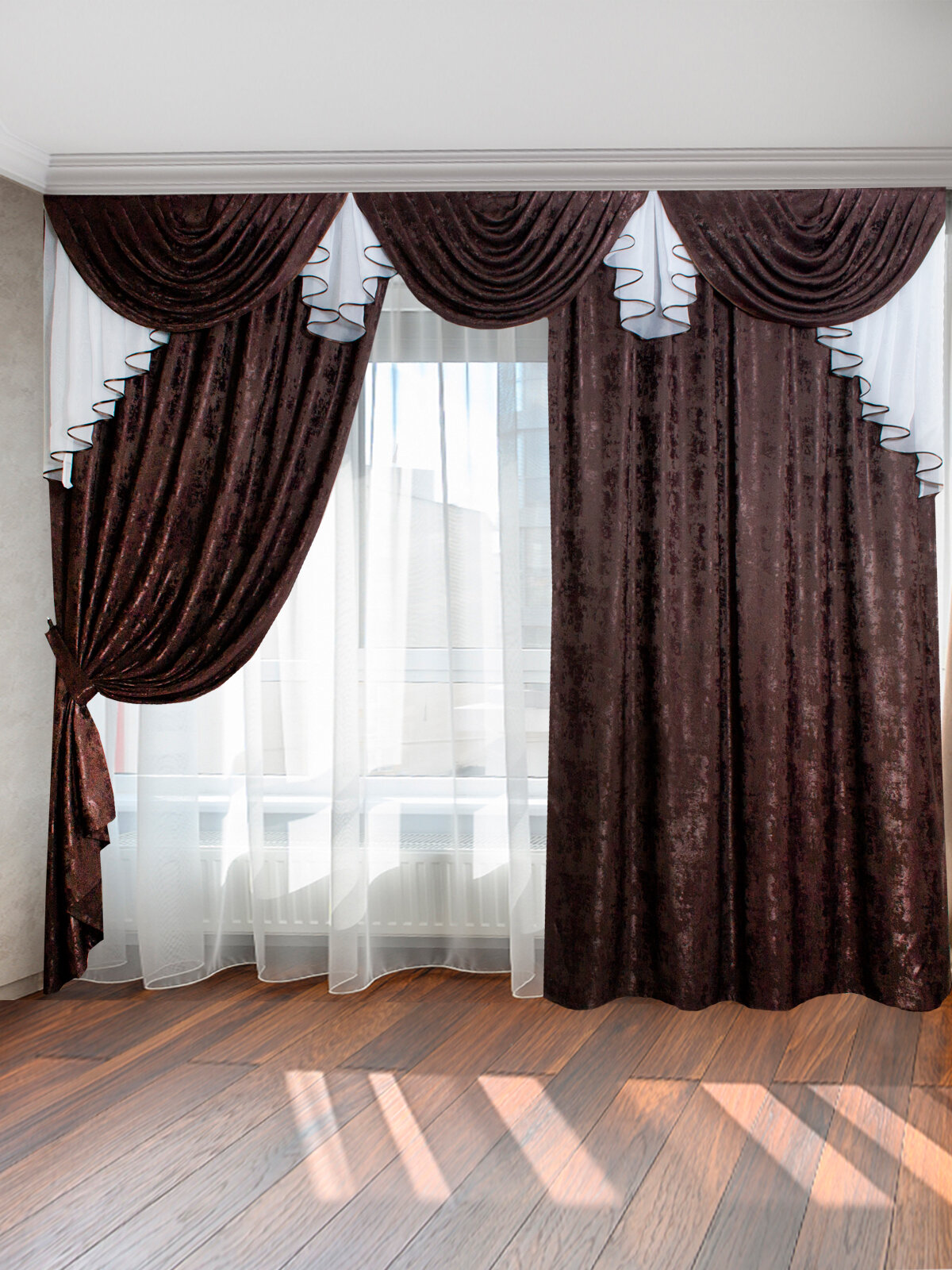 Шторы интерьерные Домалетто с ламбрекеном и подхватами Графиня венге информация: