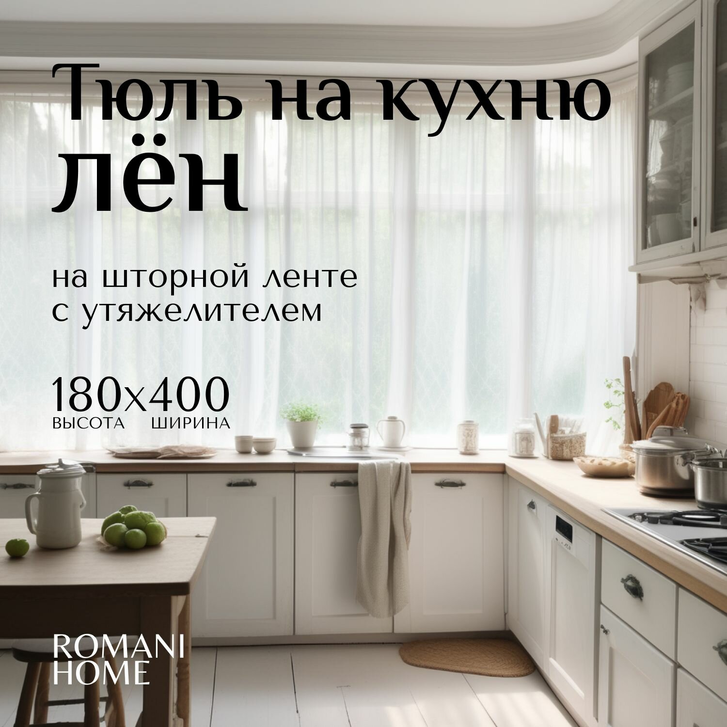 Тюль Лен короткий Romani Home с утяжелителем, 180x400см, белый, 1 шт информация: