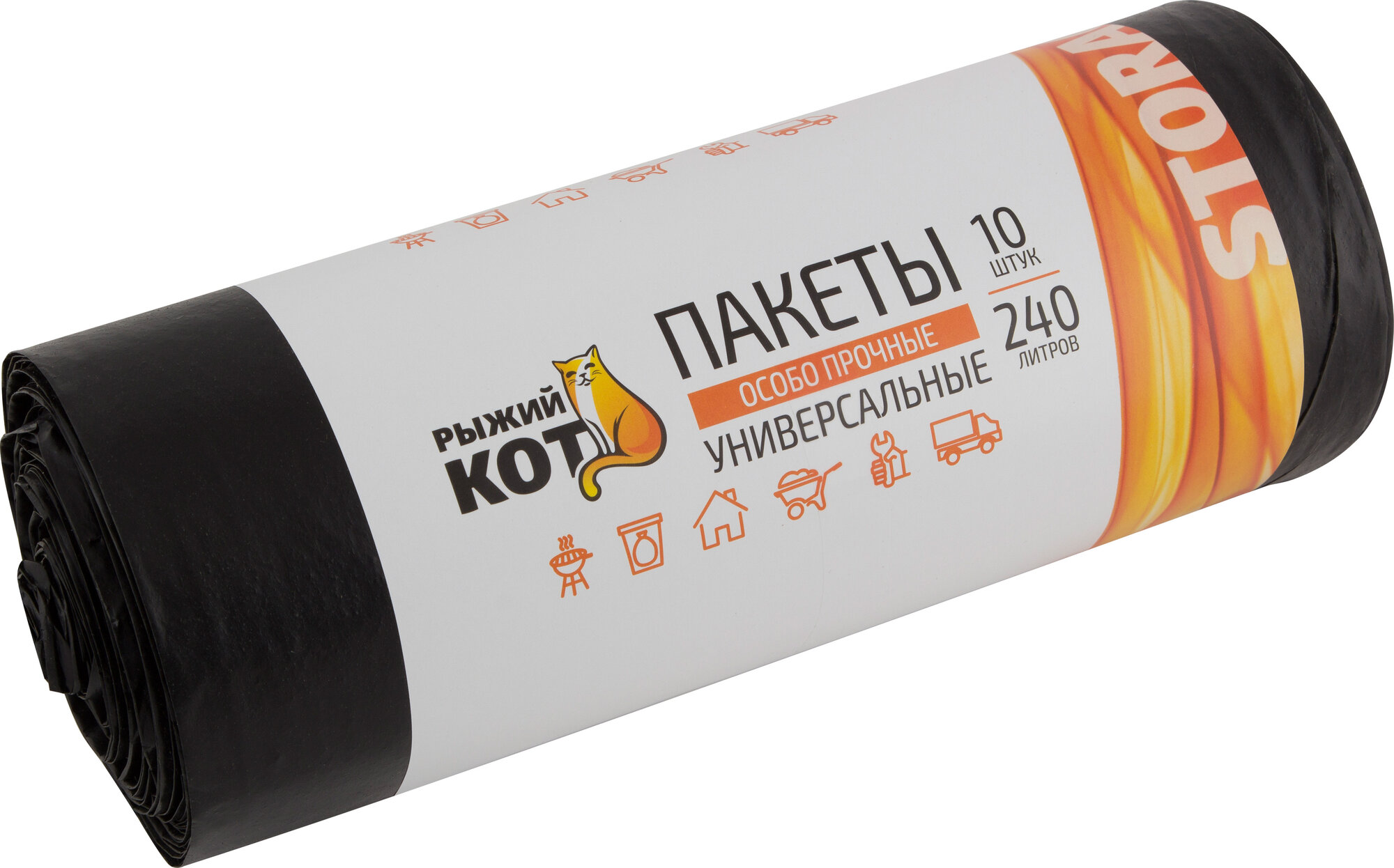 Пакеты универсальные особо прочные "Рыжий Кот" (006979), 240 л, 10 шт, 36 мкм информация: