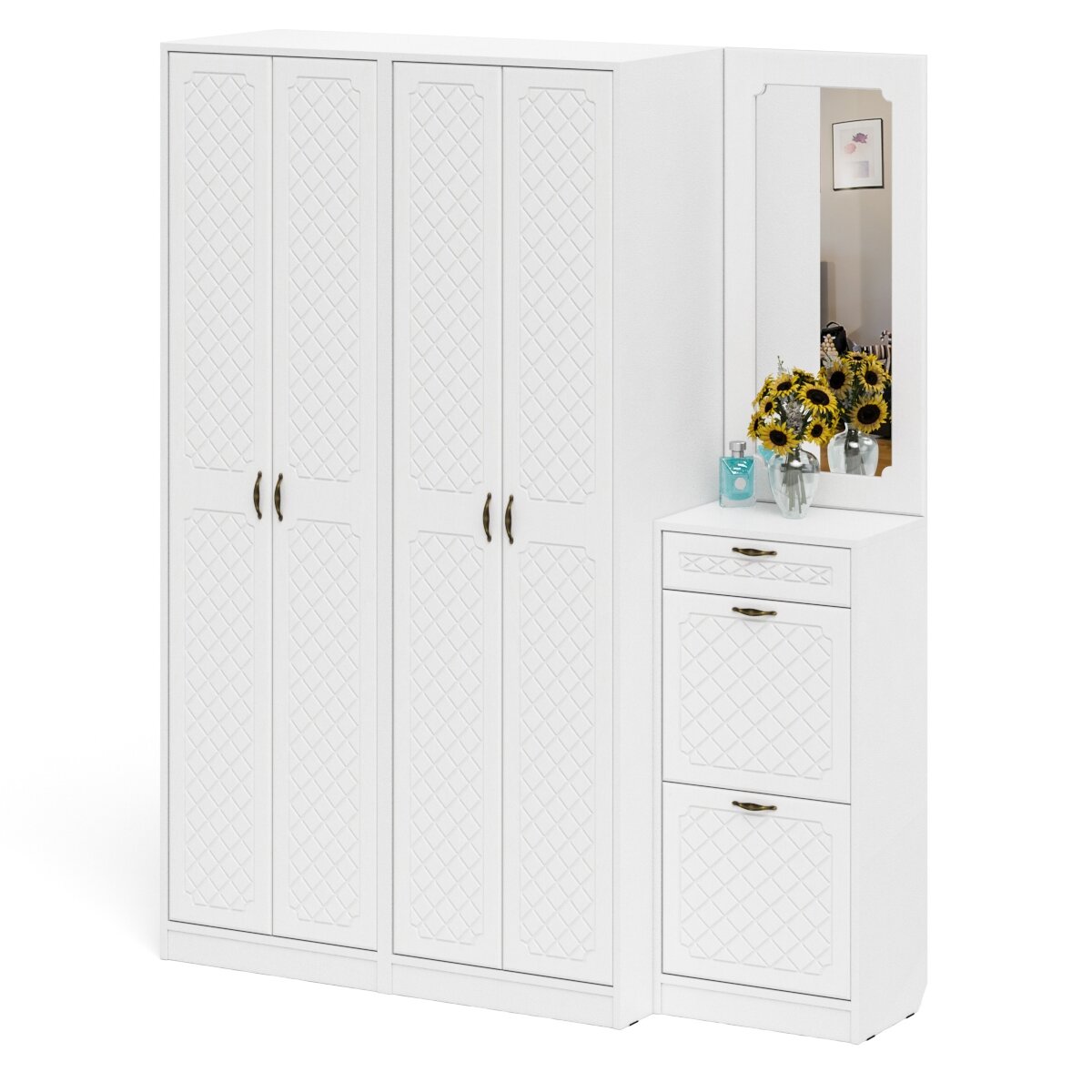 10 цен на Модульная мебель в прихожую П-6 № 14, цвет белая шагрень/фасады МДФ белое дерево фрезеровка ромб, ШхГхВ 170х50х210 см, универсальная сборка