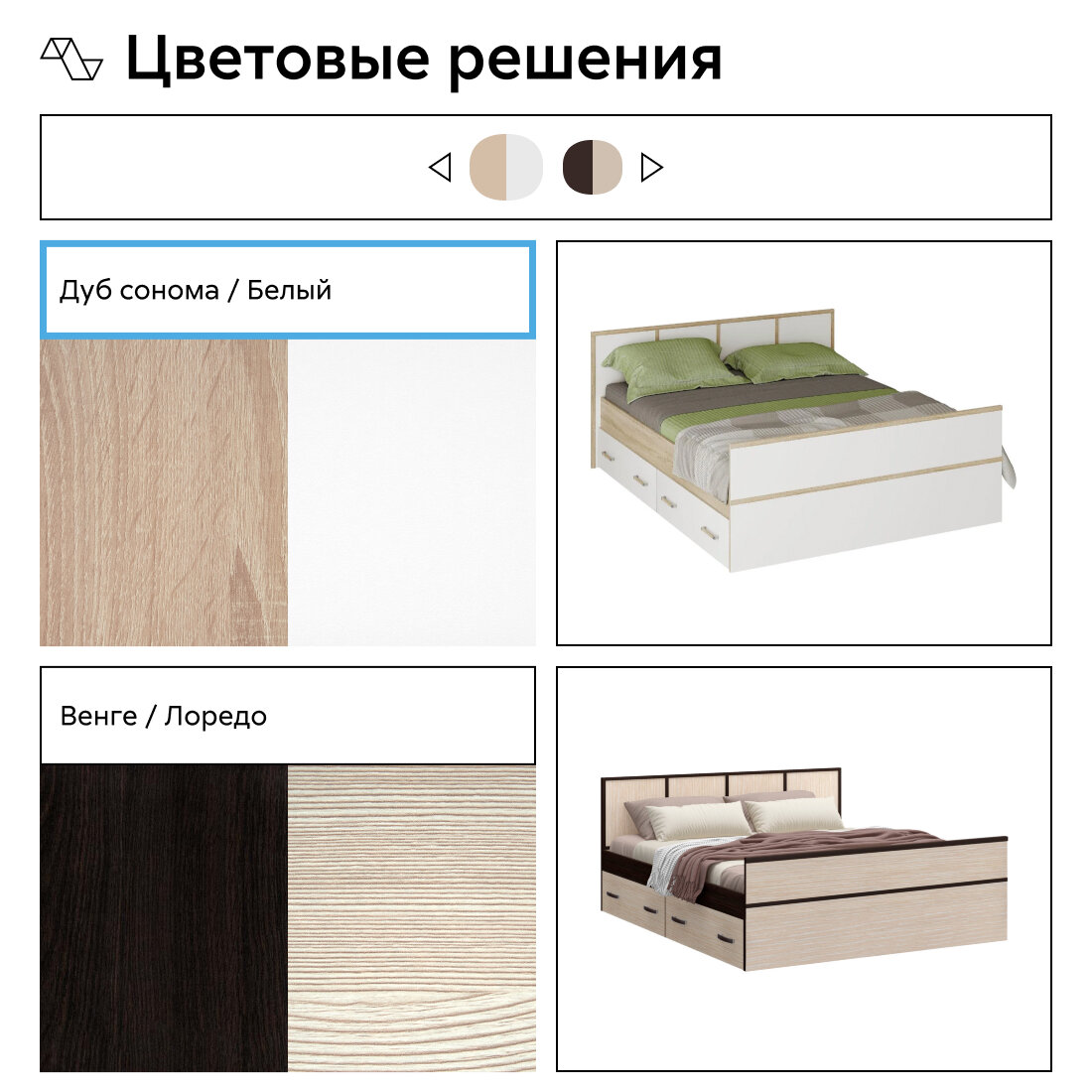 Кровать двуспальная с ящиками Нонтон Сакура, настил, 160*200 см, венге / лоредо 12 290 ₽