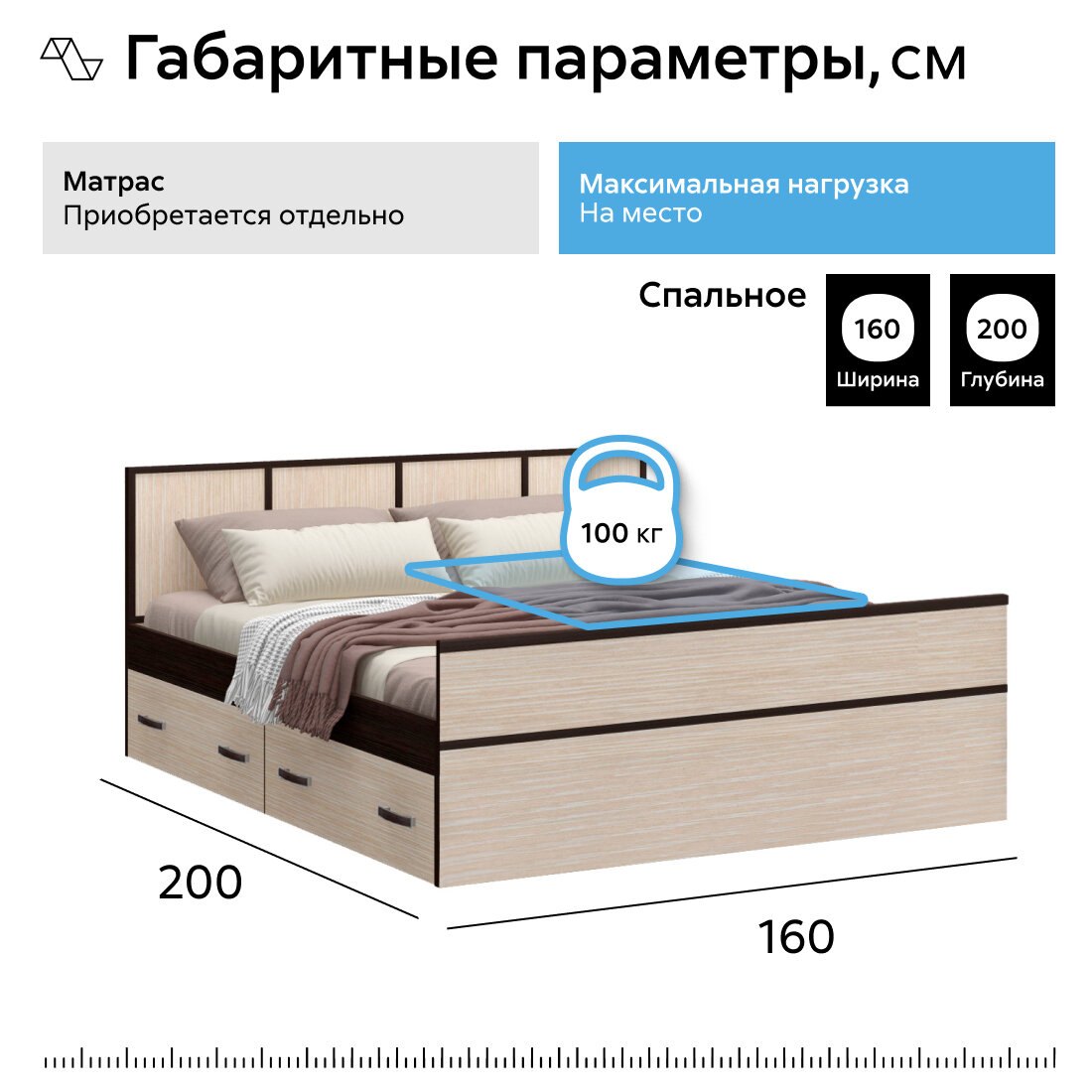 10 цен на Кровать двуспальная с ящиками Нонтон Сакура, настил, 160*200 см, венге / лоредо