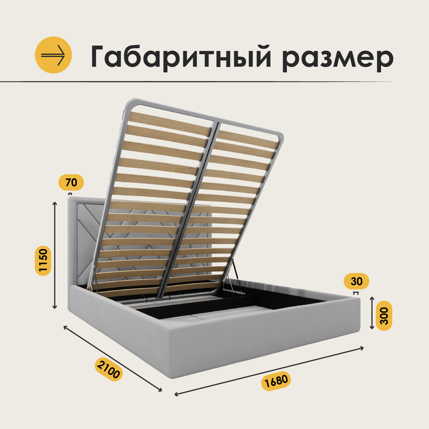 Кровать 160х200 двуспальная Алекса, с подъёмным механизмом, с ящиками, с мягким изголовьем, светло-серая информация: