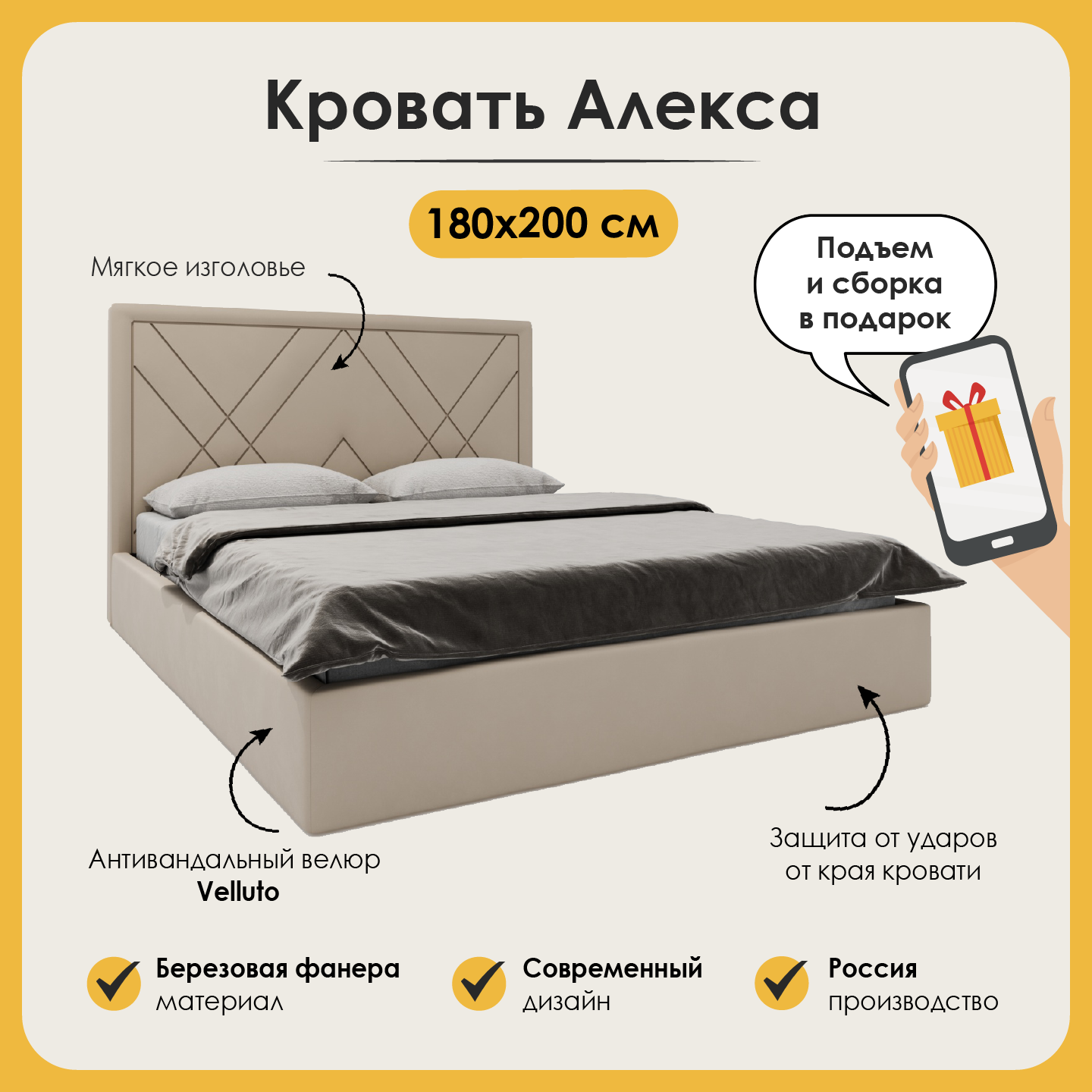 Кровать 180х200 двуспальная Алекса, с подъёмным механизмом, с ящиками, с мягким изголовьем, бежевая информация: