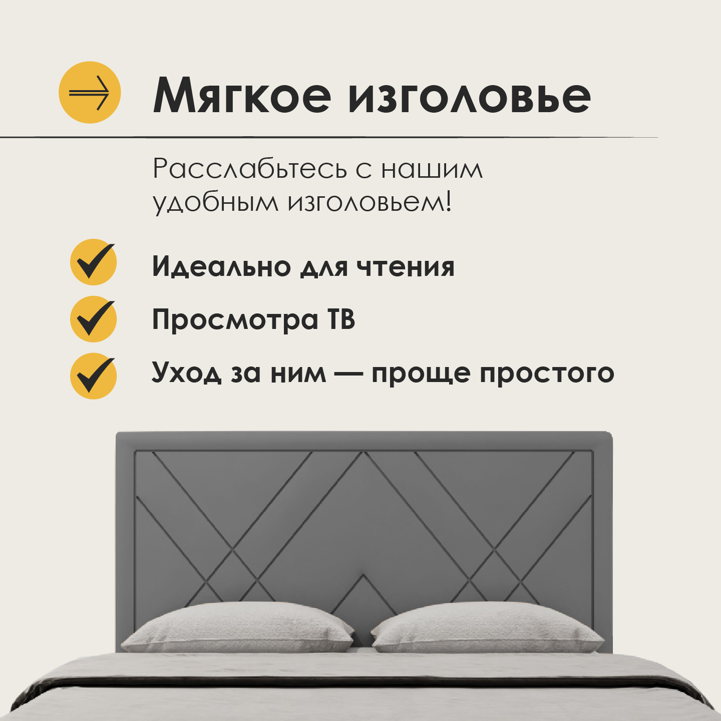 Кровать 140х200 двуспальная Алекса, с подъёмным механизмом, с ящиками, с мягким изголовьем, темно-серая информация: