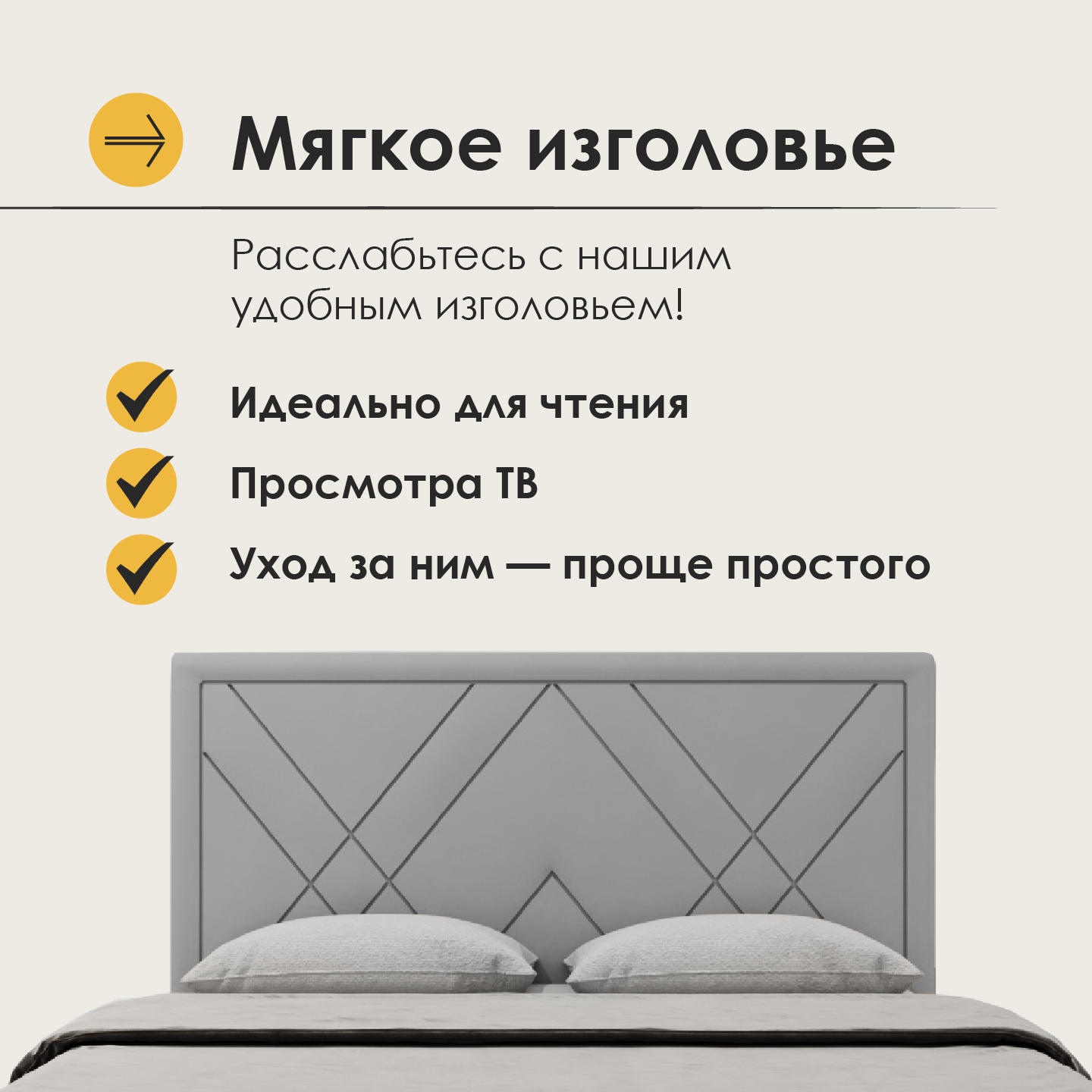 Кровать 140х200 двуспальная Алекса, с подъёмным механизмом, с ящиками, с мягким изголовьем, светло-серая информация: