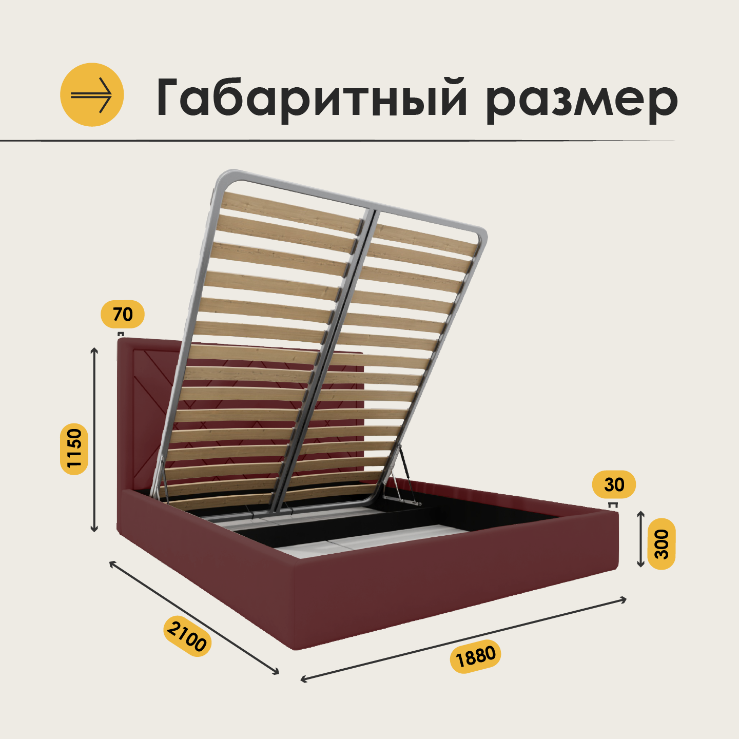 | Особенности | мягкое изголовье, с изножьем, с подъемным механизмом |