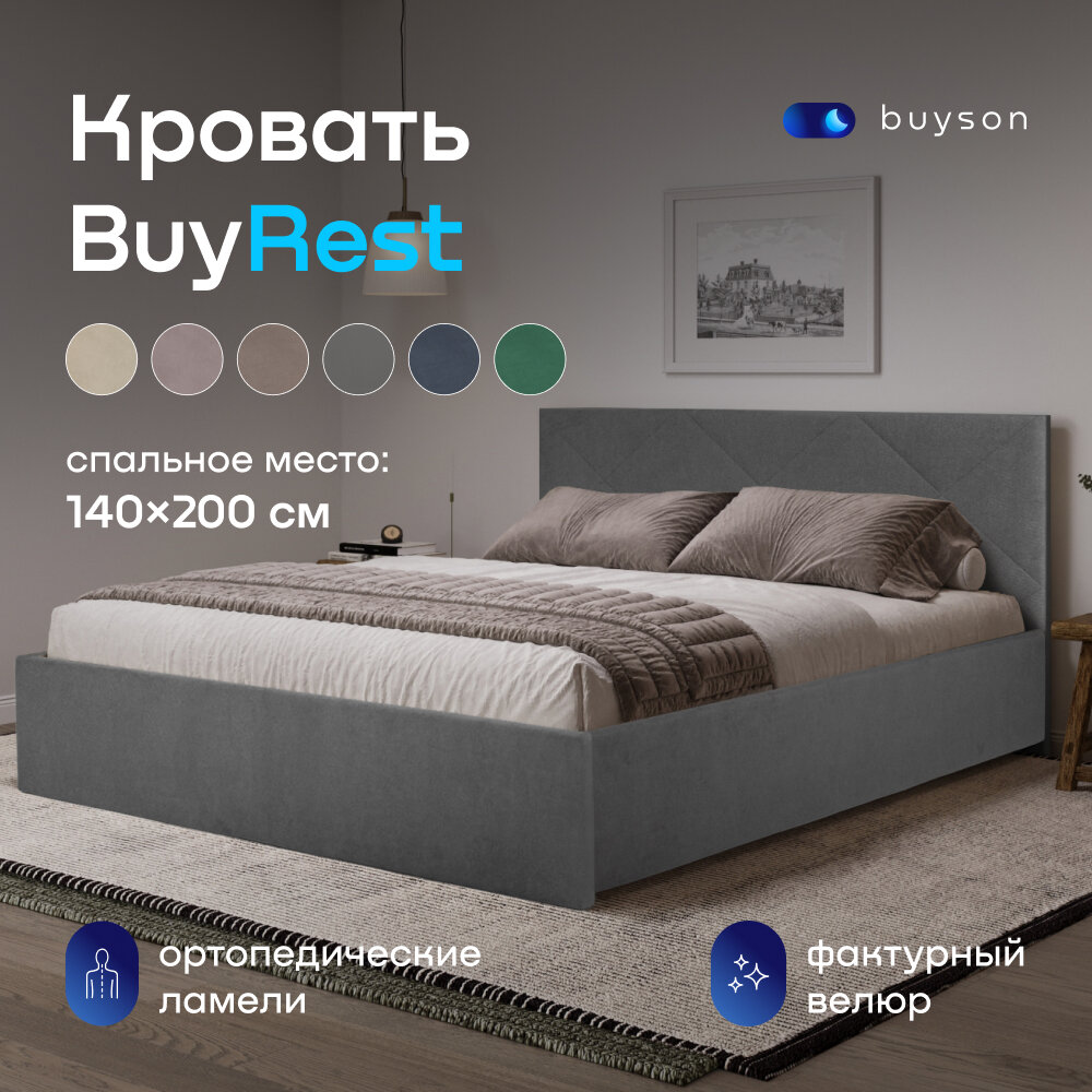 Двуспальная кровать buyson BuyRest 140х200 см, велюр, серый 19 745 ₽