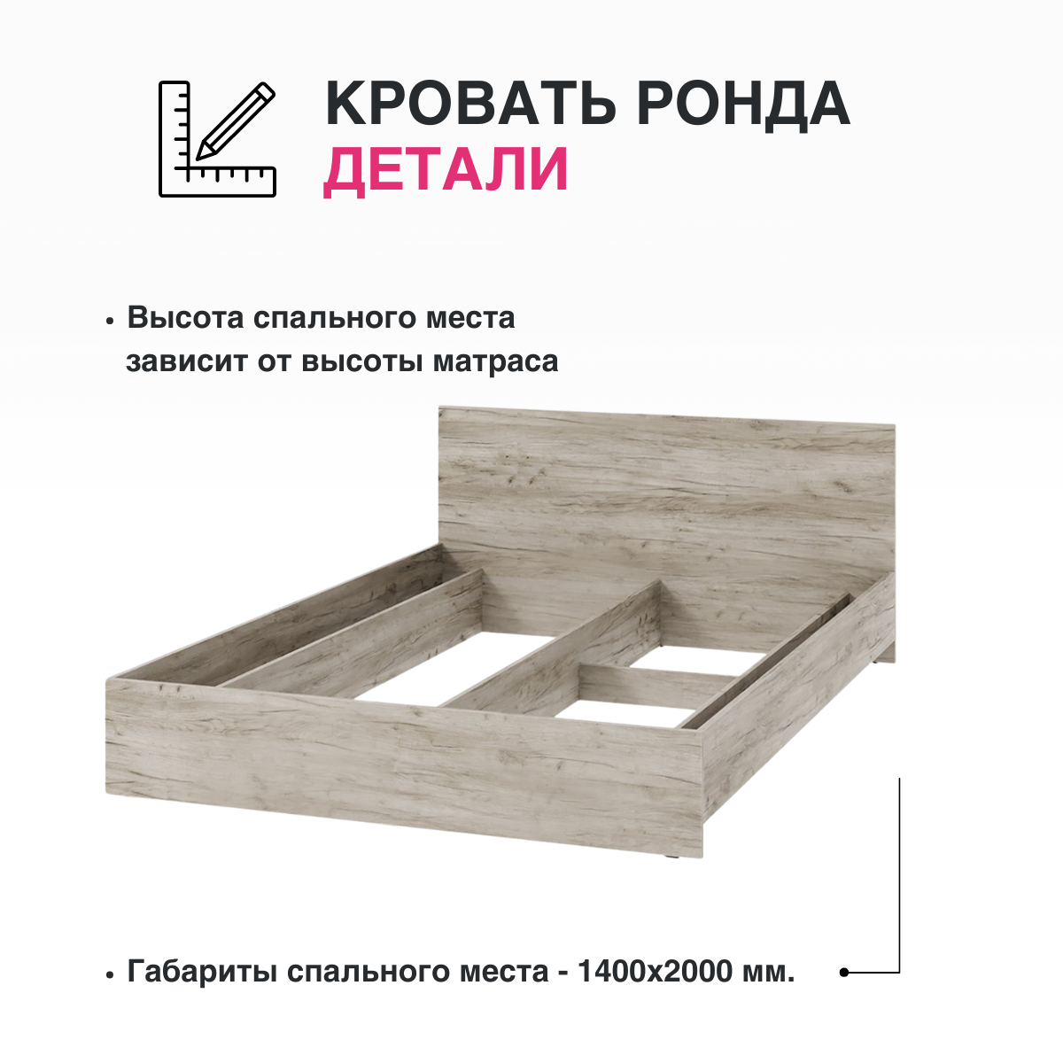 Кровать "ронда" 1,4*2,0 м (КР-140) - Дуб крафт серый 6 497 ₽