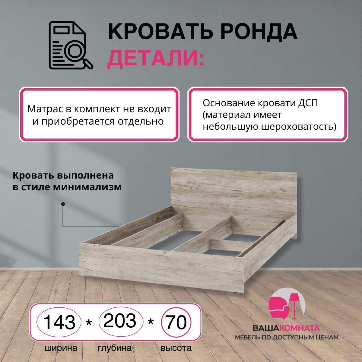 Полутороспальная кровать "ронда" (кР-140), 140x200 см , цвет Дуб крафт серый, для спальни информация: