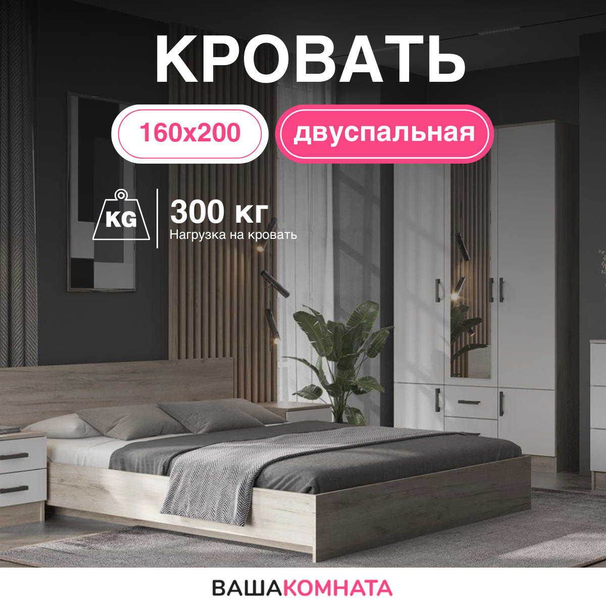 Двуспальная кровать 160х200 "ронда", 160x200 см , цвет белое дерево, для спальни 6 240 ₽