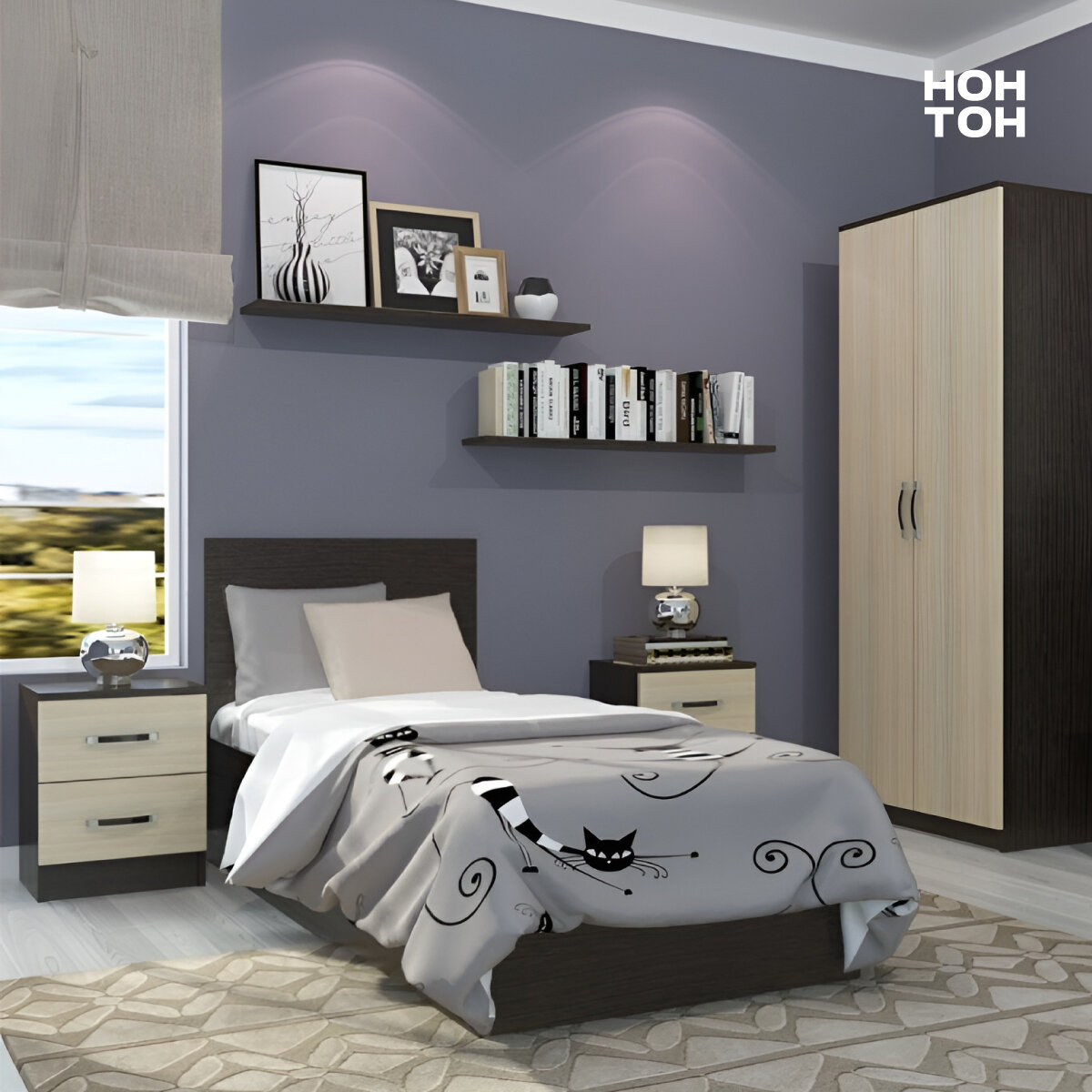 Кровать односпальная Нонтон Ронда, 80*200, основание ЛДСП, венге информация: