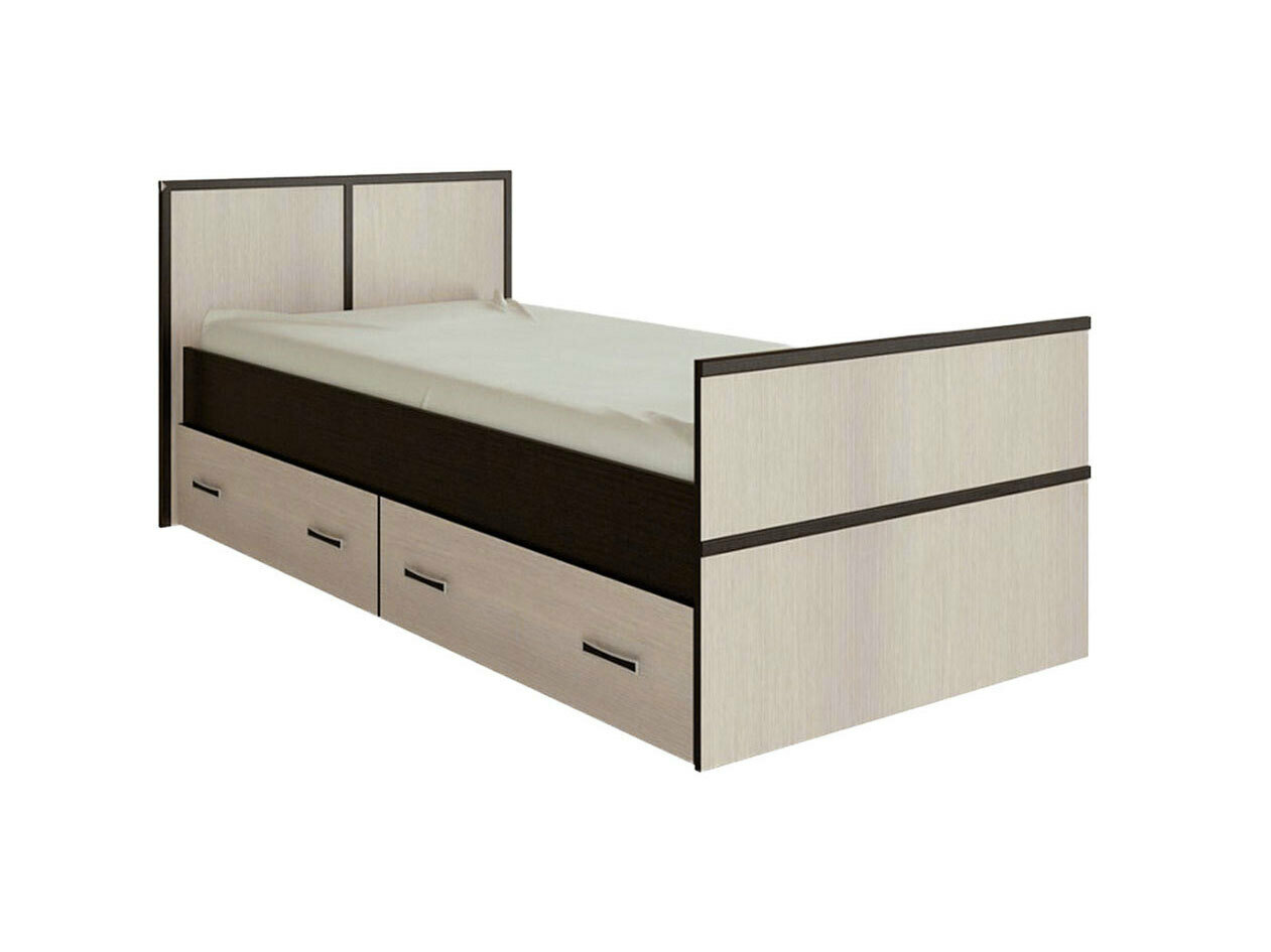 10 цен на Кровать односпальная Сакура 90х200 см, с ящиками, основание настил, с изножьем, со спинкой, Венге / Лоредо,