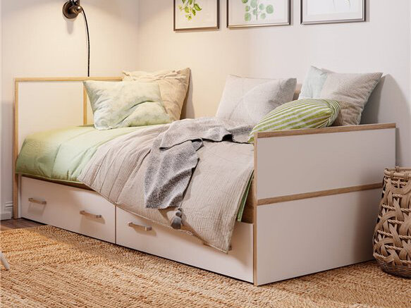 Кровать односпальная Сакура 90х200 см, с ящиками, основание настил, с изножьем, со спинкой, Дуб Сонома / Белый 10 300 ₽