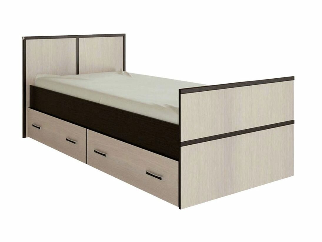 10 цен на Кровать односпальная Сакура 90х200 см, с ящиками, с реечным основанием, с изножьем, со спинкой, Венге / Лоредо
