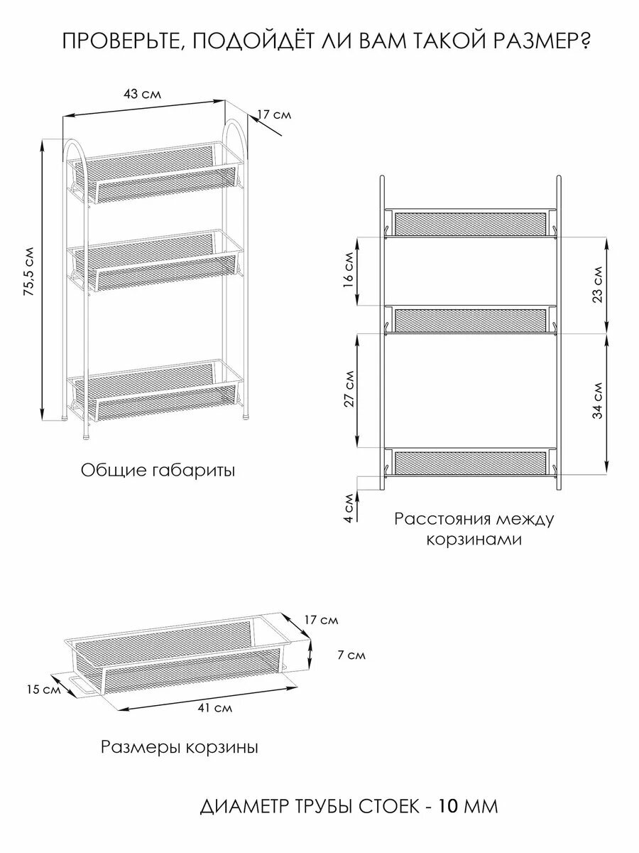 | Дополнительная информация | Нагрузка на 1 корзину до 10 кг; сборка без инструментов |