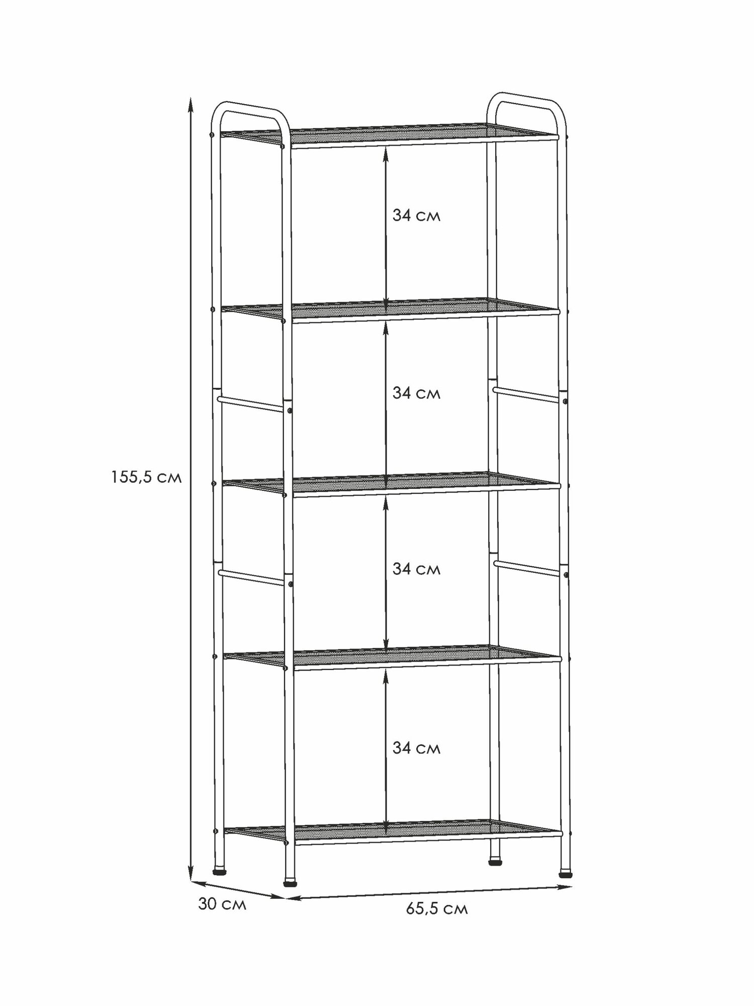 Стеллаж Валенсия 25 (графит) 65,5*30*155,5см, 5 сетчатых полок (до 8кг каждая) СТВ25Гр ЗМИ (арт. 843091)