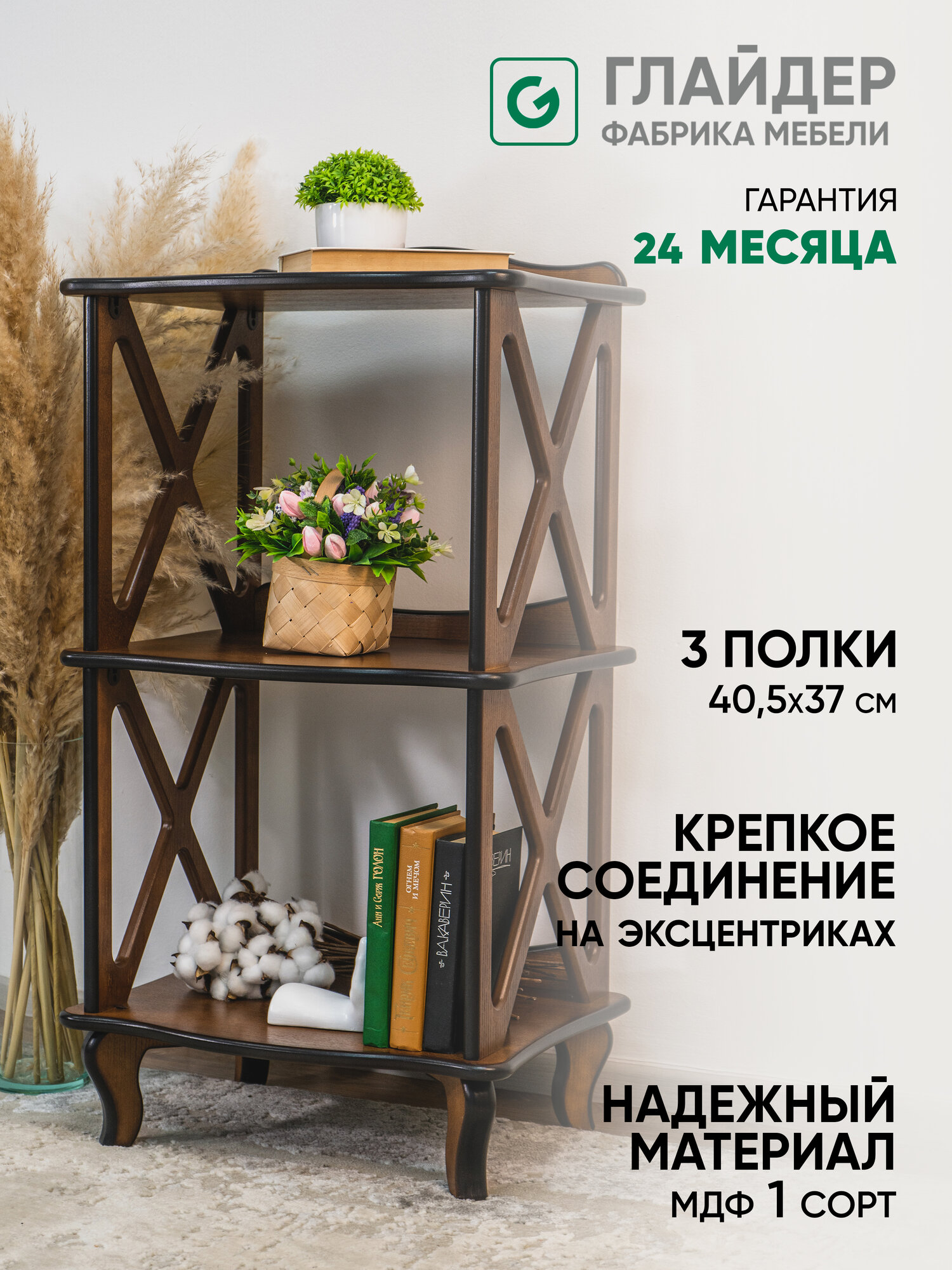 Этажерка-стеллаж деревянный напольный Glider Модерн 3, цвет орех 17 195 ₽