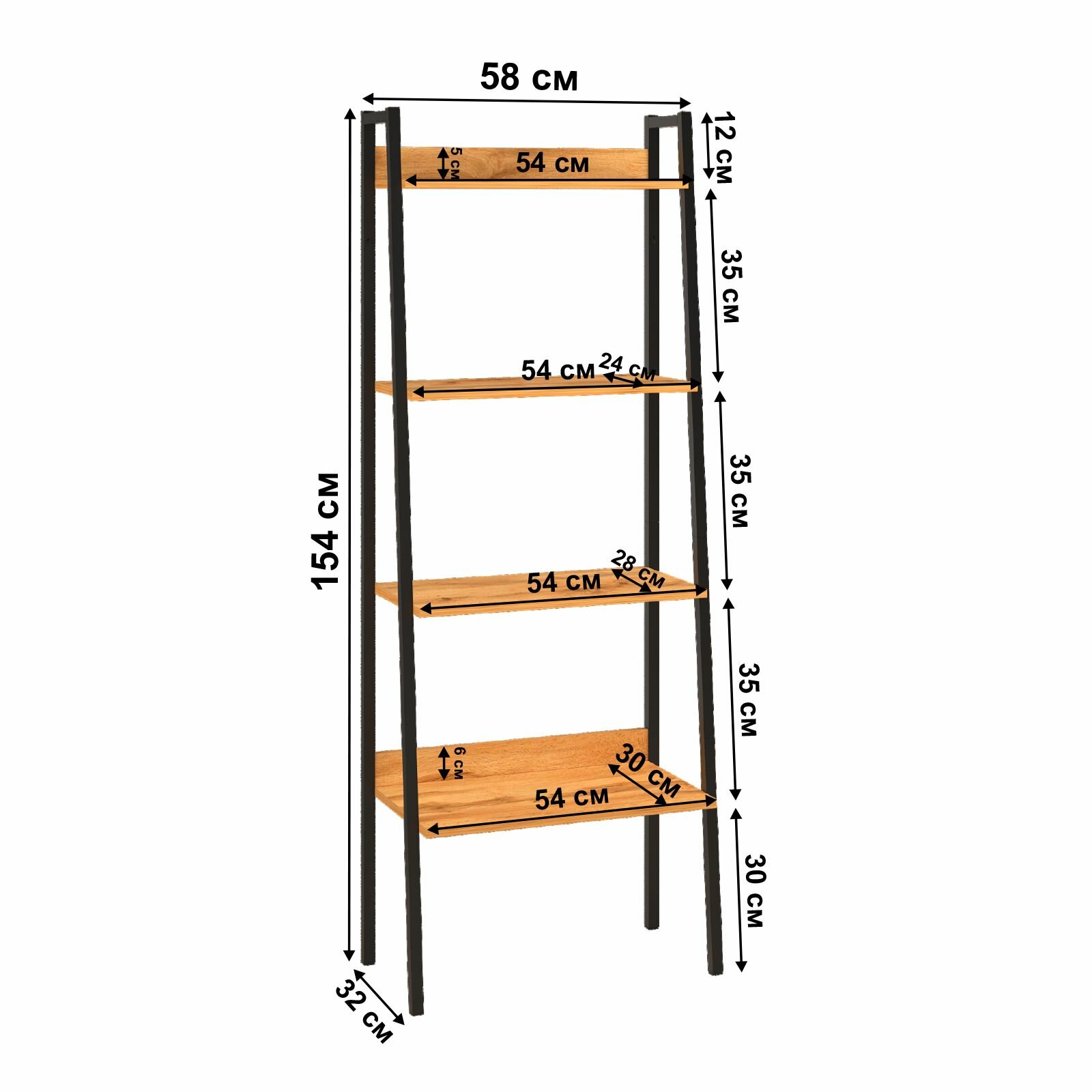 Стеллаж этажерка Tokyo Дуб Вотан, Черн. металл. 580х1544(h)х320 4 590 ₽