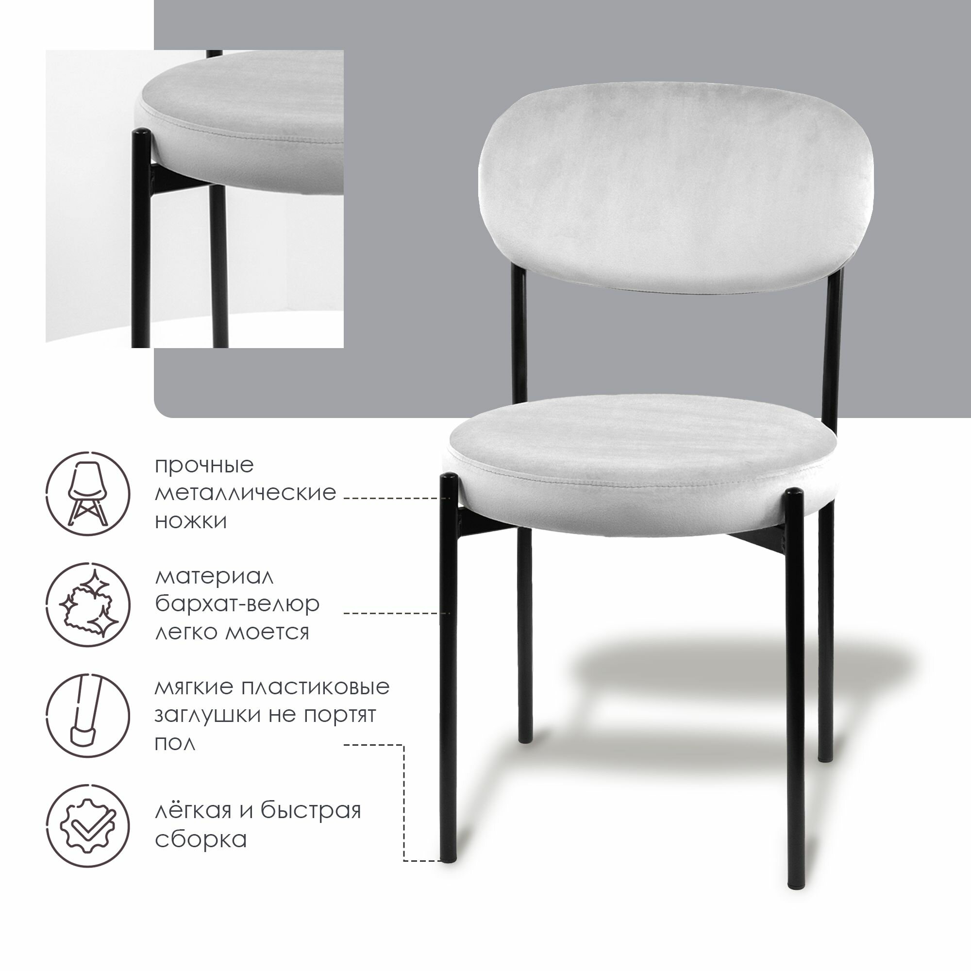 Стул мягкий для кухни Vortex белый металл 4 шт информация: