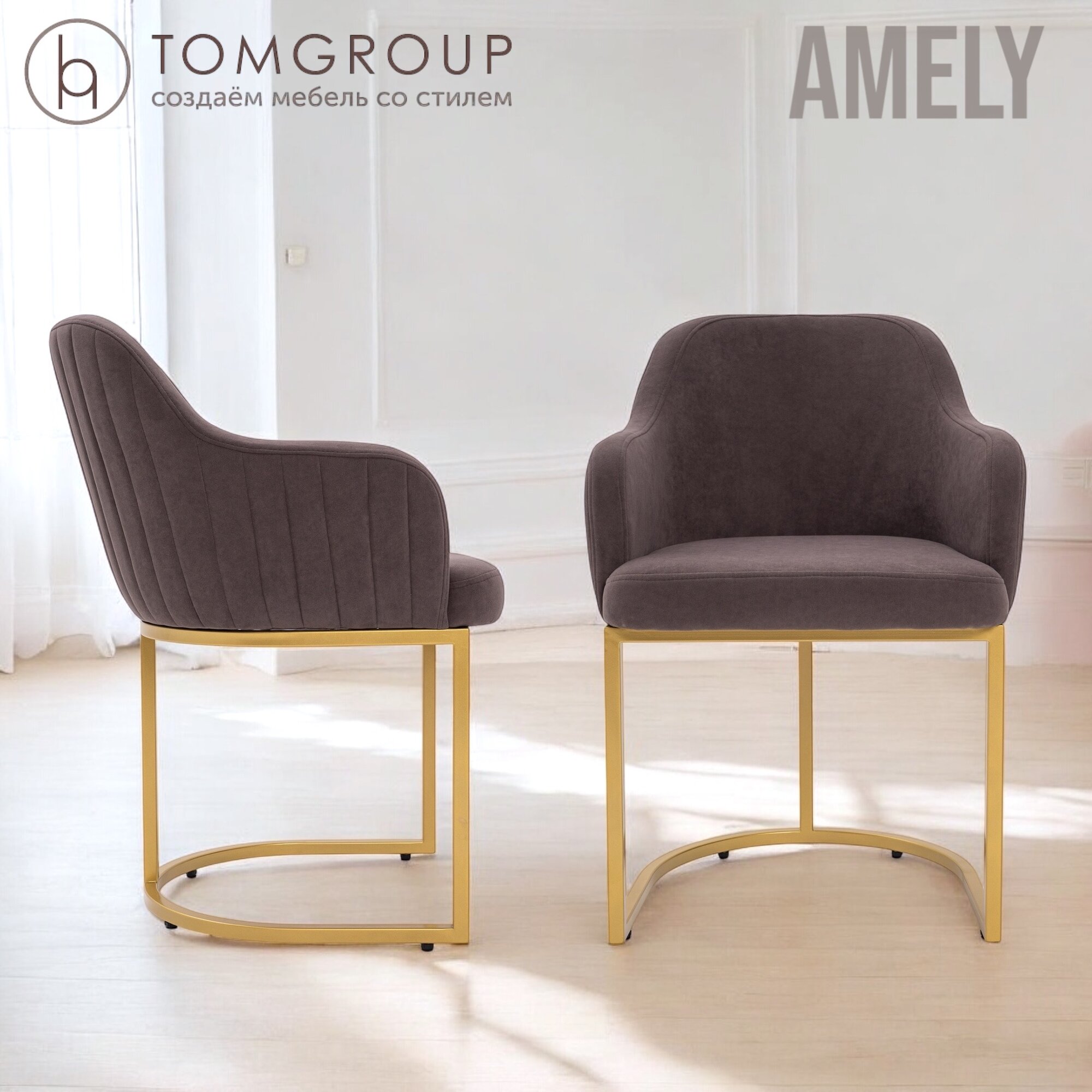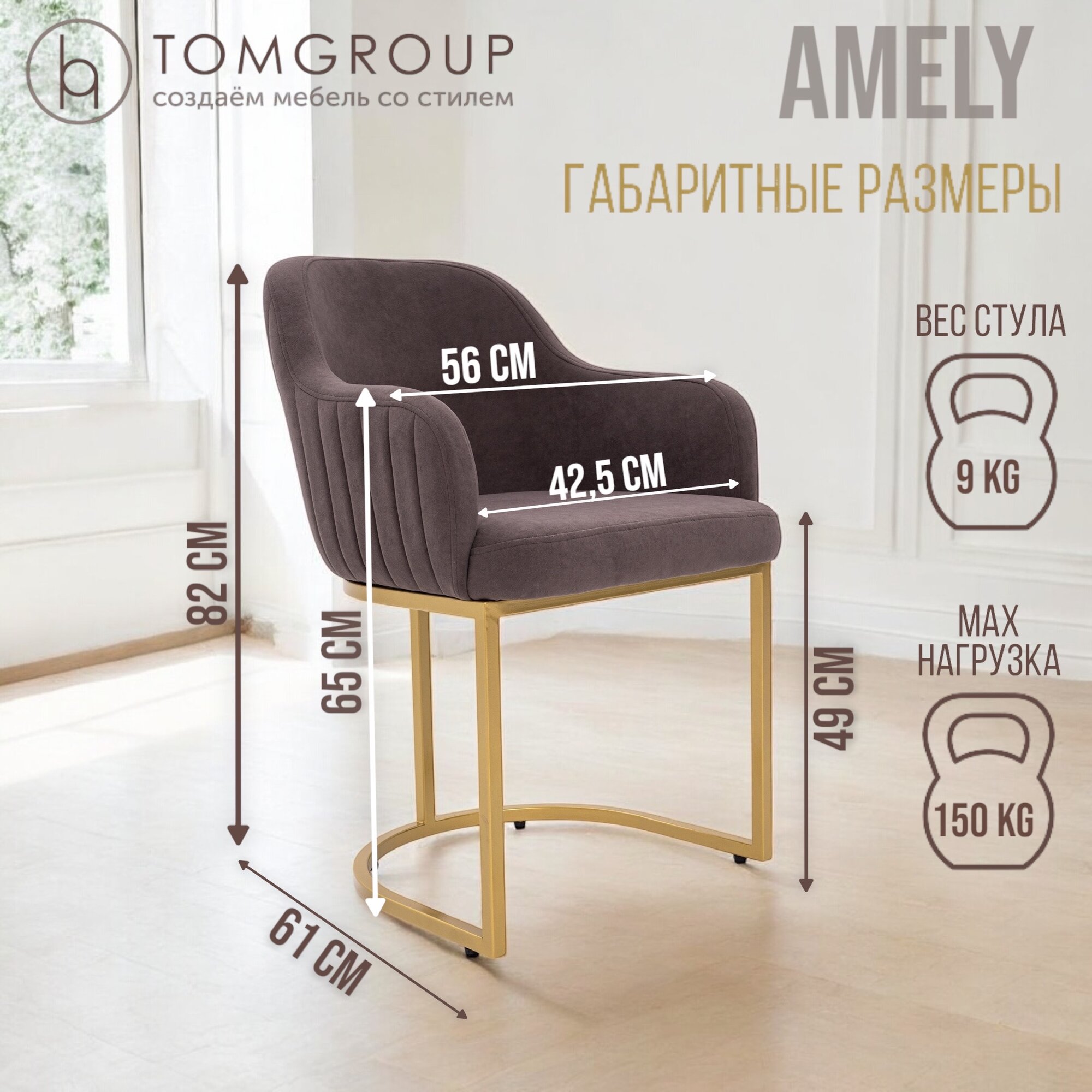 Стул TOMGROUP Amely Gray/Gold, подлокотники, ГОСТ, золотой каркас, серый велюр — дом, офис 14 257 ₽