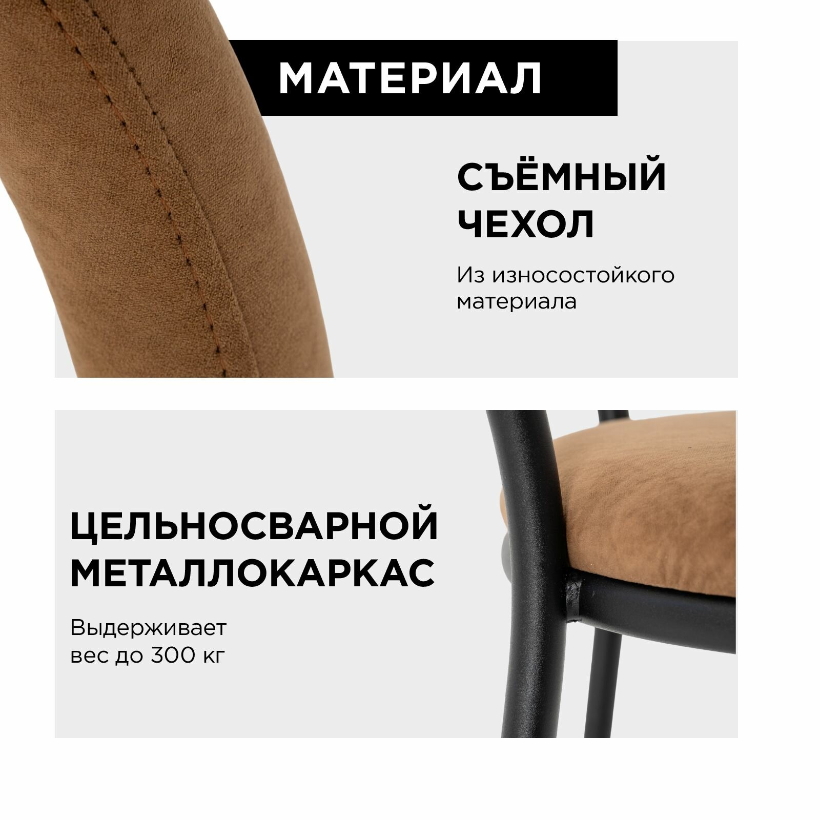 Комплект 2 стула Модерн на цельносварном металлокаркасе для кухни, гостинной, офиса, темно-бежевого цвета 10 499 ₽