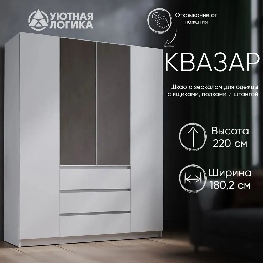 10 цен на Шкаф для одежды четырехдверный Квазар с 3 ящиками ШК 041/ЗР 220*180*50 с ЗЕРКАЛОМ, Белый
