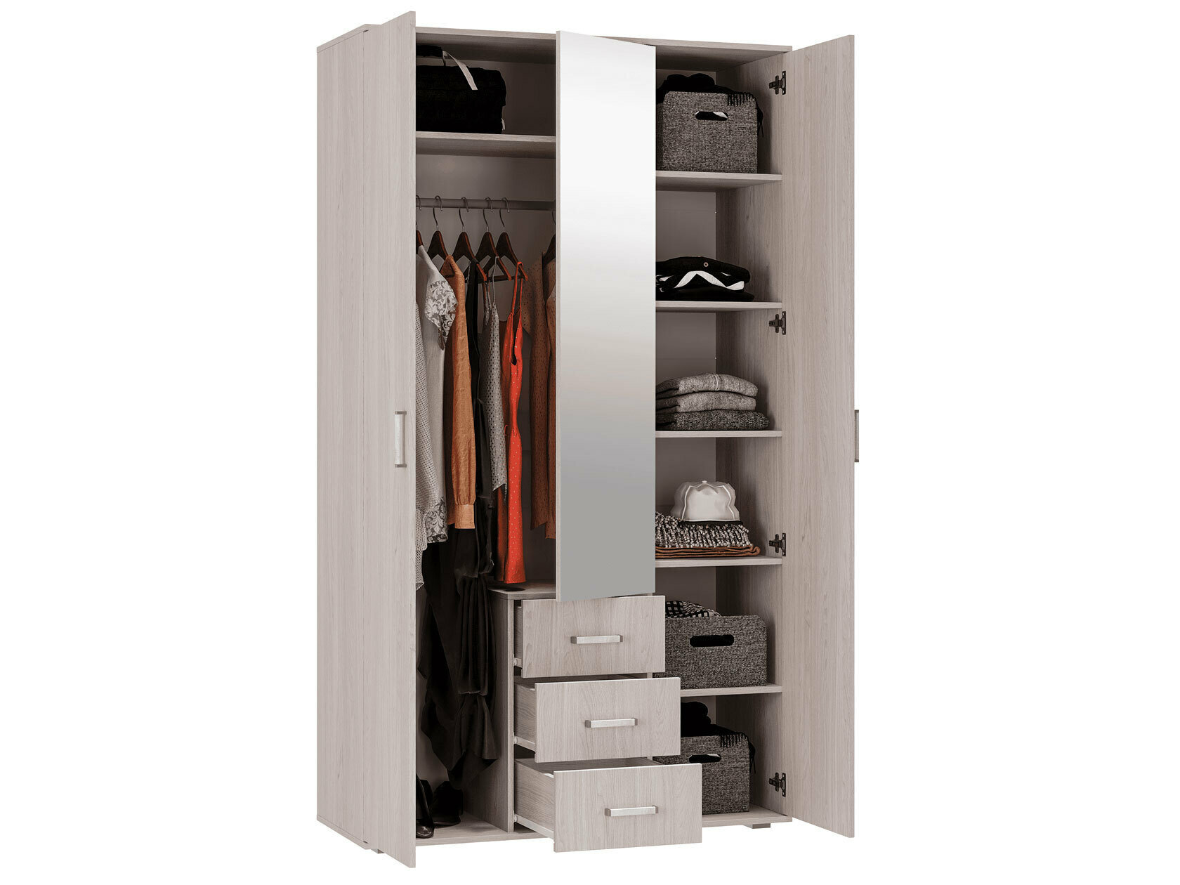 10 цен на Шкаф распашной для одежды Белла с ящиками, полками, зеркалом, штангой, 120х47х212 см, Белый ясень