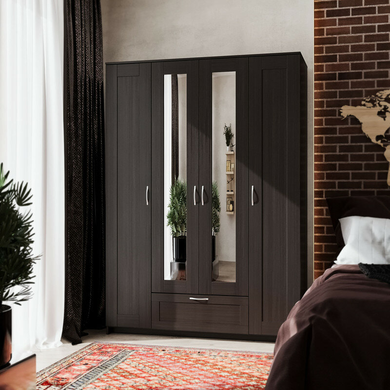 Шкаф четырёхдверный Гуд Лакк Сириус (1 ящик, 2 зеркала) Дуб Венге 47 651 ₽