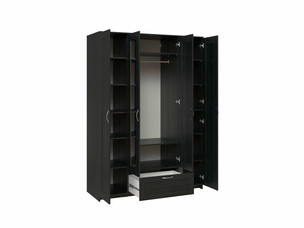 Шкаф ГУД ЛАКК Сириус, 4 двери и 1 ящик с зеркалом, 156х59х220 см, черно-коричневый, дуб венге 49 999 ₽